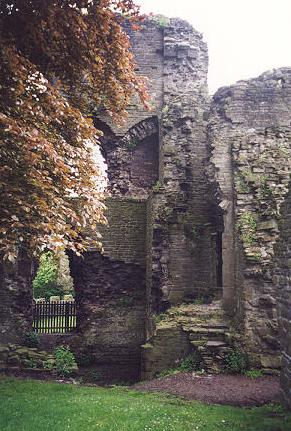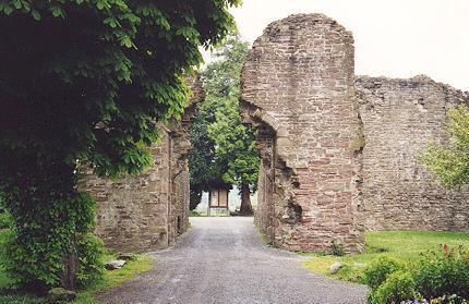 The approach to the castle is through the gatehouse, which is the youngest part, added about 1400, possibly in response to the threat from Owain Glyndwr. It had a long narrow passageway, originally vaulted and with rooms above which must have been comfortable, judging from the large fireplace on the south side.