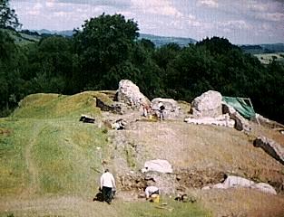 Cadw (Welsh Historic Monuments) have funded the excavation currently directed by Dr. Lawrence Butler, and excavation has taken place during the four weeks of July every year (due to be completed in 1998). I have been a member of the excavation team since 1994. The purpose of this is to fill in a few missing links in the general knowledge of Dolforwyn, and it includes details of the most recent (1997) excavation finds.