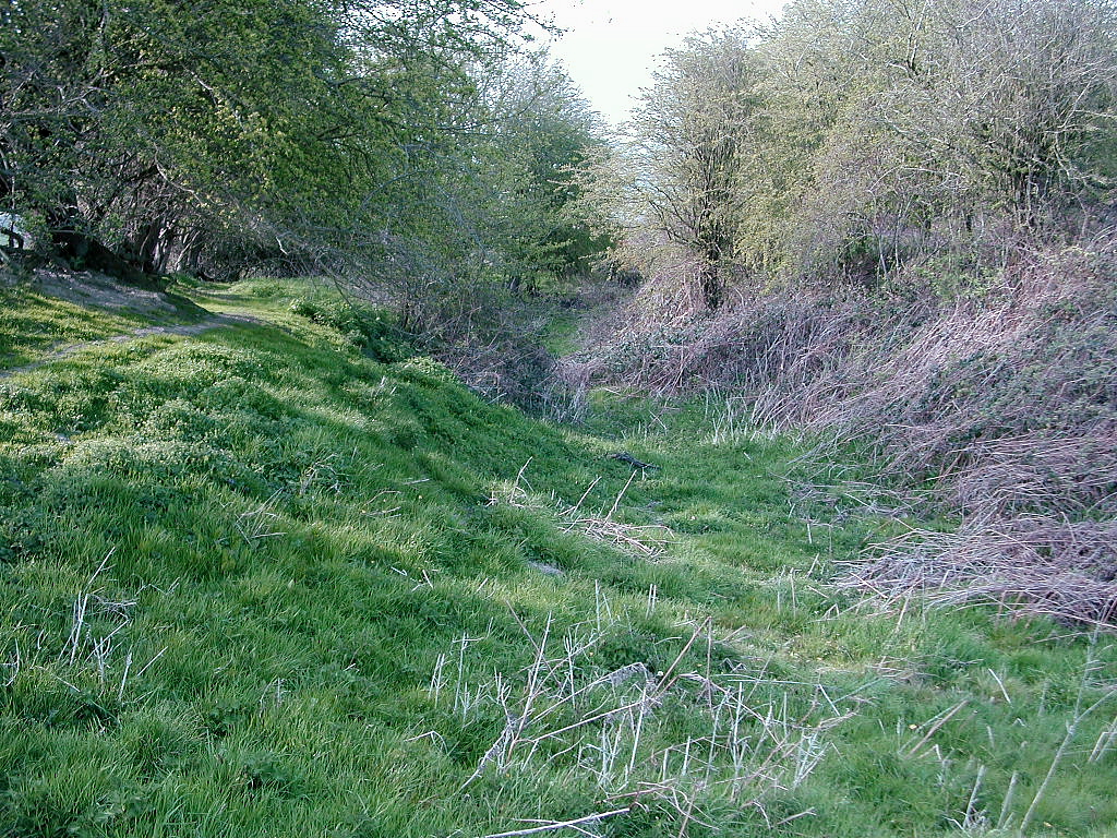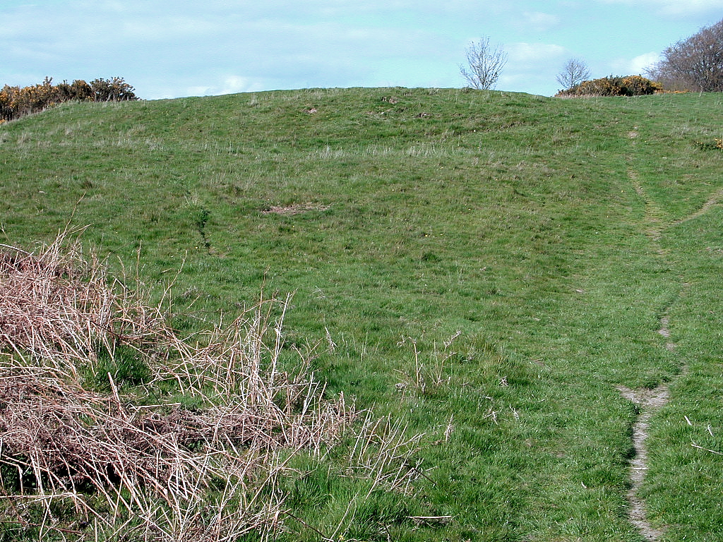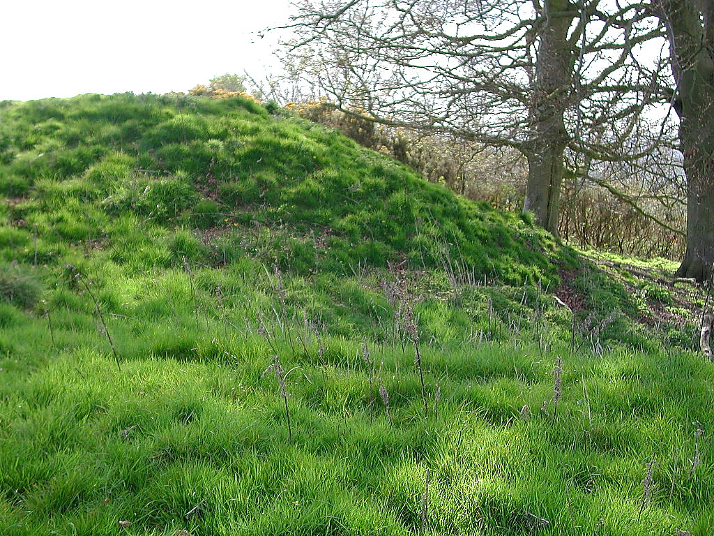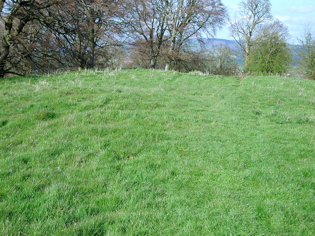 At a later date a timber-laced rampart , with a second rampart outside it, was constructed at a lower level, completely surrounding the earlier work. It enclosed a greatly increased defended area, 300m by 200m. The main entrance of this larger enclosure faced south-west, and an annexe was built at this vulnerable end, visible in the field next to the road, before the entrance proper is reached over the second stile.
