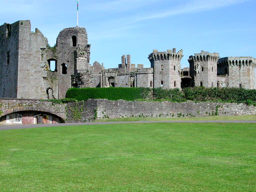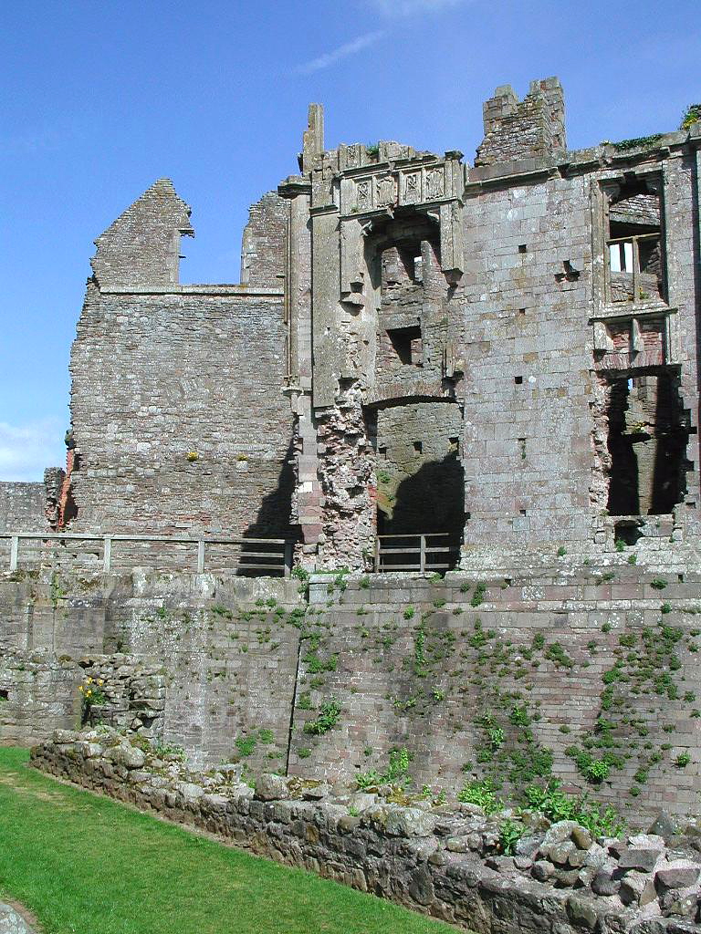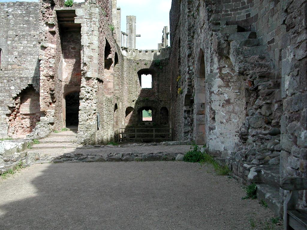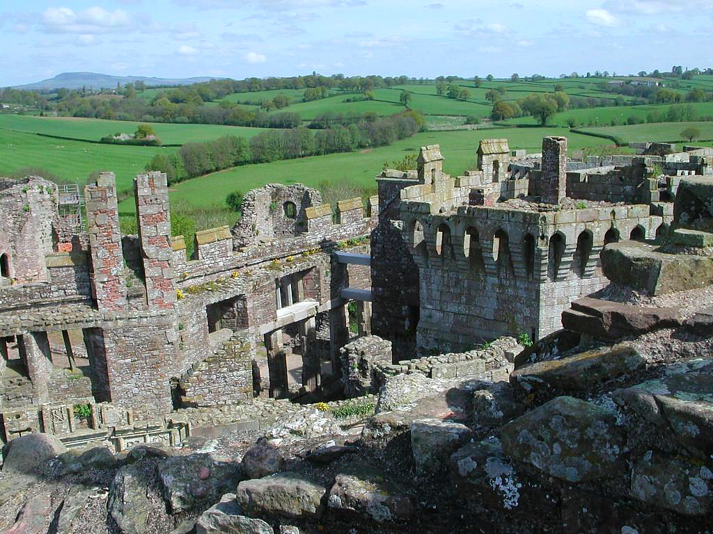 Below (2): two views of the castle and beautiful surrounding countryside from the top of Raglan's Great Hall.