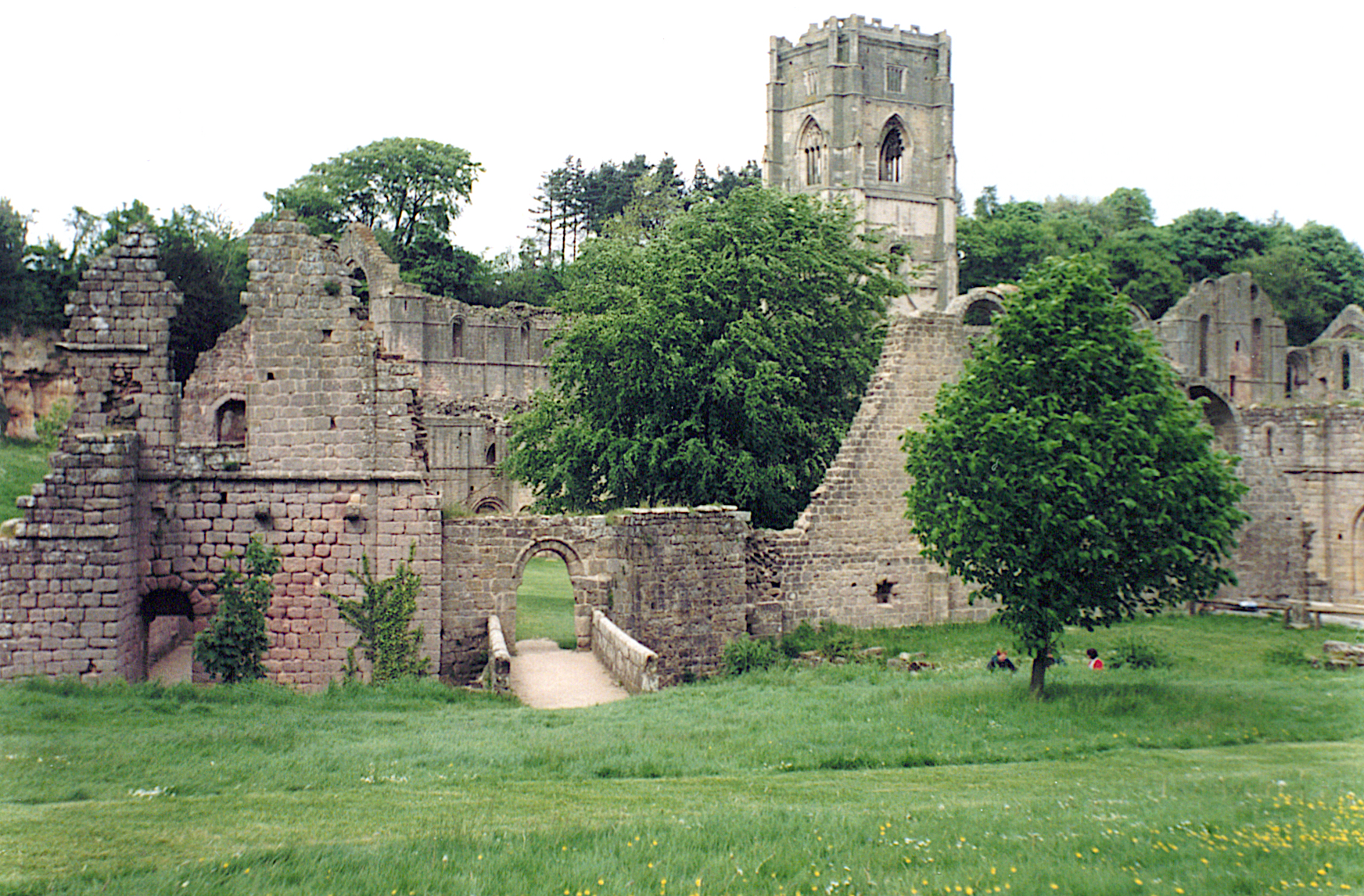 It was about a 40 minute drive from Thirsk to Fountains Abbey via the A168 and B6265, passing first through the town of Ripon. Fountains Abbey is one of the largest and best preserved ruined Cistercian monasteries in England. Founded in 1132, the abbey operated for 407 years, becoming one of the wealthiest monasteries in England until its dissolution in 1539. We parked our car in the large parking lot and paid our admission. You have to make your way down a paved path a bit before you can really see much of the abbey. Eventually the abbey reveals itself in all its grandeur. While we were impressed with the style and size of Rievaulx, we were blown away by Fountains Abbey. According to the guidebook the abbey grounds covered 70 acres and was once surrounded by an 11-foot wall built in the 13th century. This is a huge complex with buildings that, even in ruin, remain massive and formidable. Fountains seemed to me more like a palace rather than an abbey, equaling or exceeding in size and layout most of the castles we had visited. The builders of Fountains were obviously very wealthy. The abbey was founded in the 1130s and by the 1170s the abbey church had reached a length of 300 ft and had 11 bays in the side aisles. To me this was the most impressive part of the abbey and we lingered here admiring the wide open nave and the huge columns that framed the space. There is also a 160-foot-tall tower at the northern end of the north transept that seemed a bit out of place in an abbey. The square Cloister Court is found next to the abbey church near the center, and is also bounded by the Cloister, Chapter House, and Refectory. It took us a more than an hour to explore the abbey and grounds, and I don't think we managed to see everything. In addition, the entire abbey is part of the larger Studley Royal Park which features an 18th-century landscaped garden, a water garden, the ruins of a Jacobean mansion and a Victorian church. It would certainly take more than an afternoon to visit and explore the abbey and all the park has to offer. We did spend some time walking the portion of the park that was close to Fountains, but by then it was time for us to leave. During the walk back to the car and on the way home we had time to reflect on the places we had visited. Rievaulx and Fountains were certainly two of the more majestic ruins we had explored, and we wondered if there was anything left on out itinerary that could equal this day. (Don't worry...there was.)