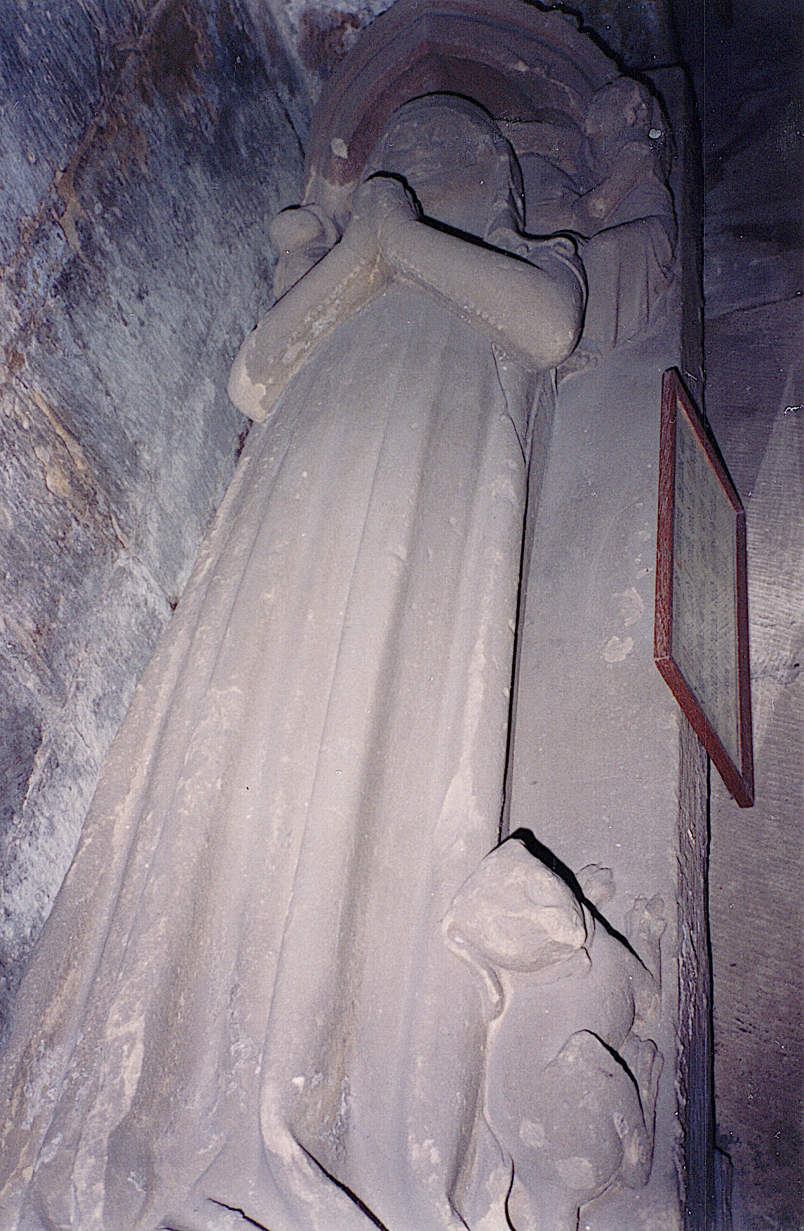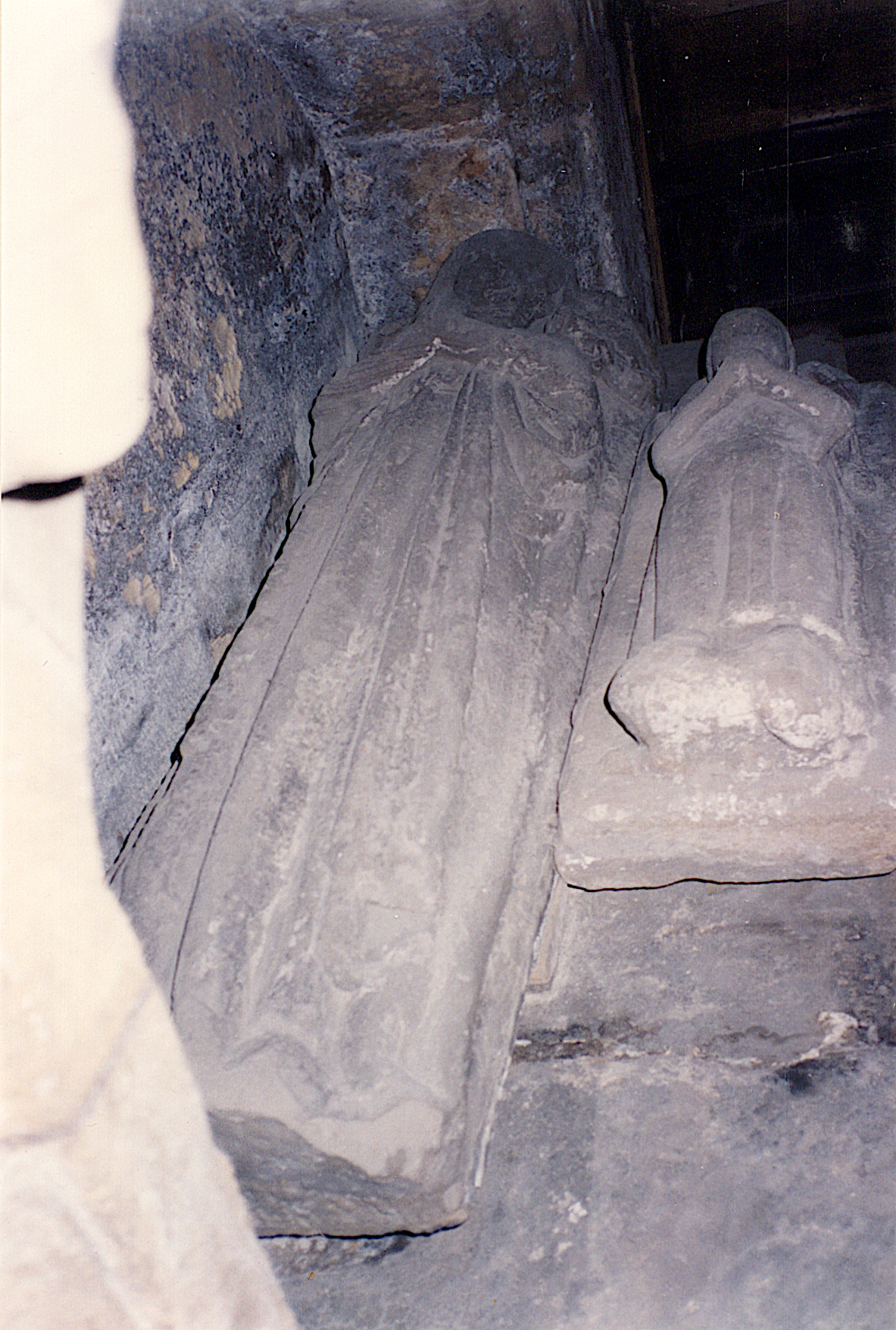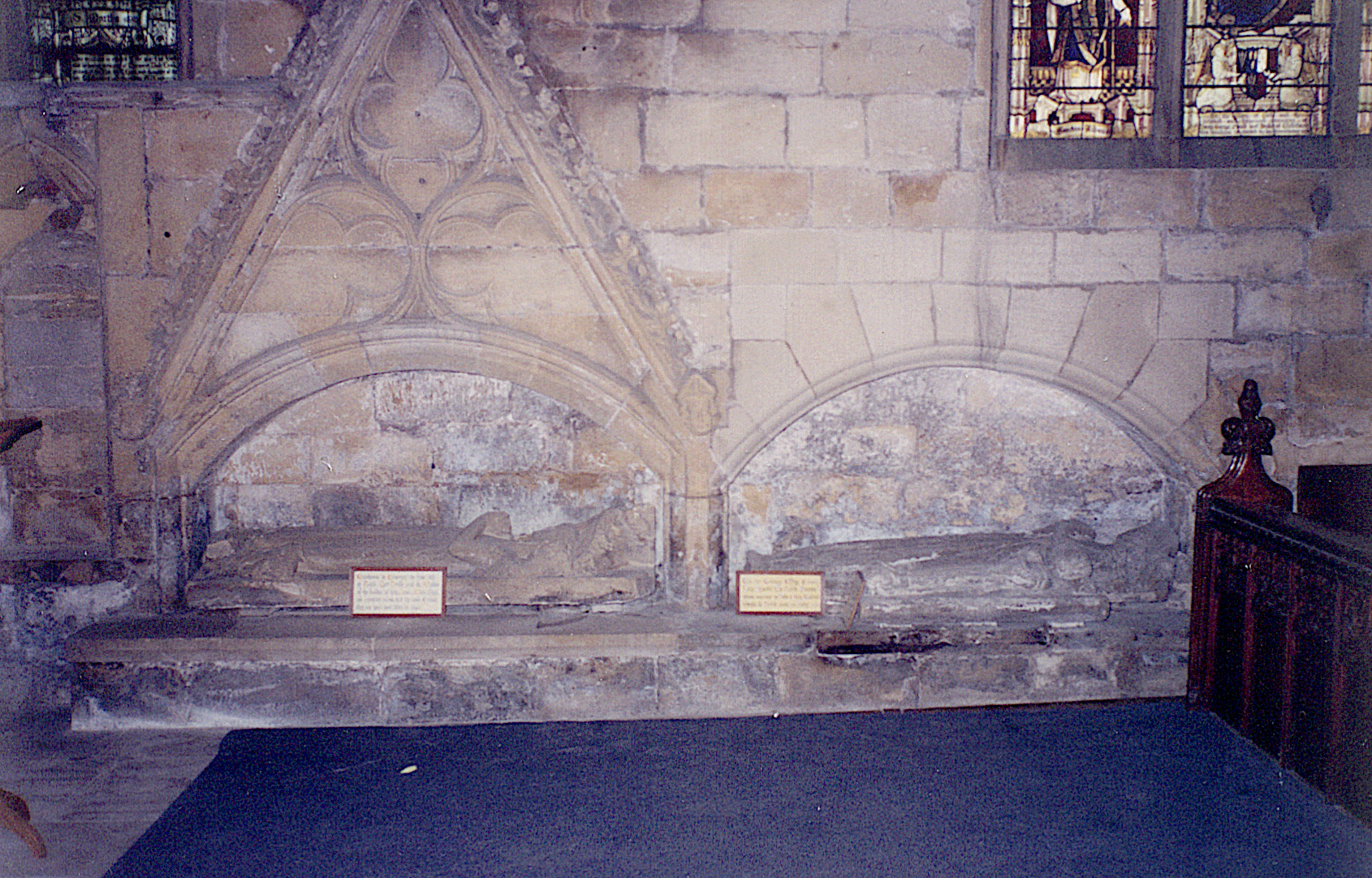 Below: effigies of Euphemia de Clavering, wife of Ranulph Neville, 1st Baron Neville (left) and Isabel Neville fitz-Maldred & child (right)