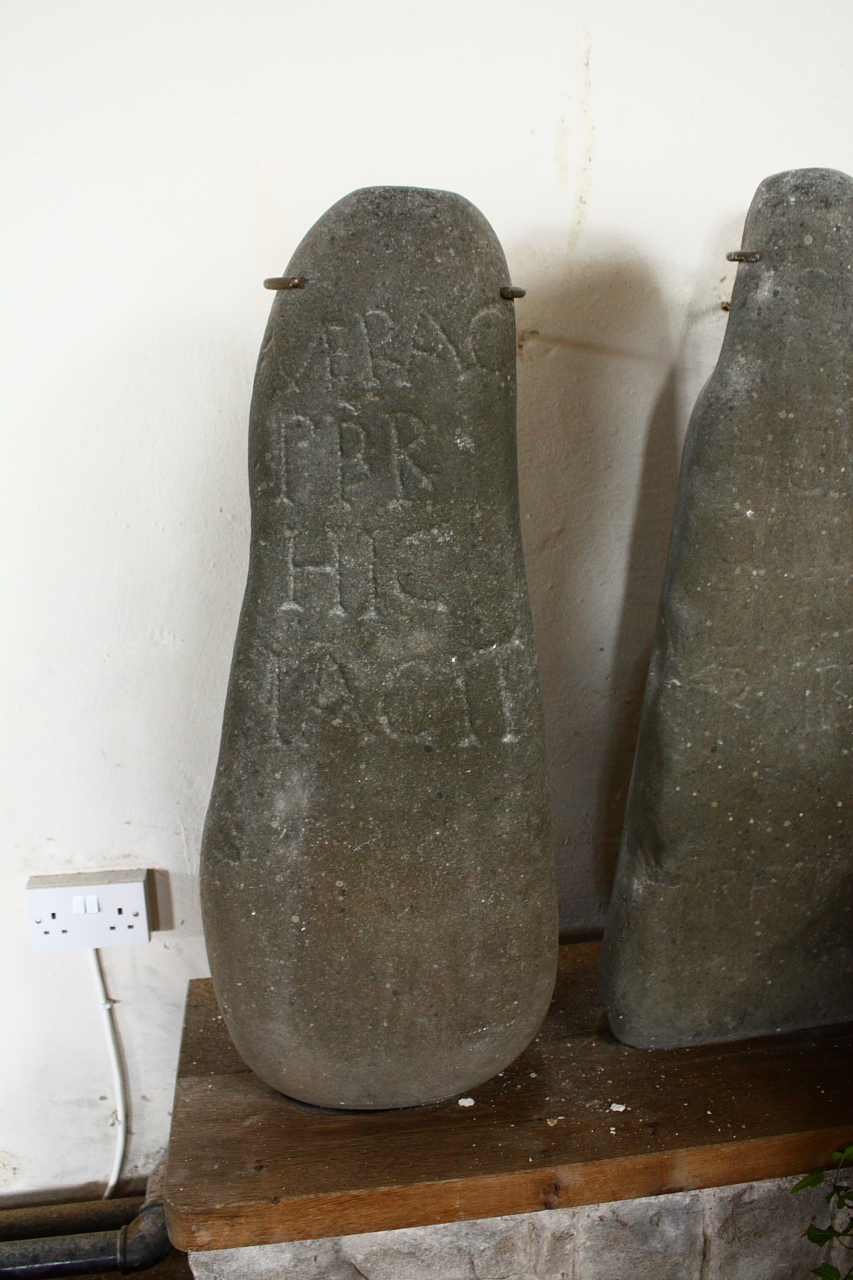 Both record the graves of priests. One is inscribed VERACIUS / PBR / HIC / IACIT, or: Veracius the priest lies here. The letters PBR are an abbreviation for PRESBYTER, shortened by contraction. The other stone reads SENACUS / PSBR / HIC IACIT / CVM MULTITV/D(I)NEM / FRATRVM / PRESB(IT)E[R], or: Senacus the priest lies here with the multitude of the brethren, Priest.