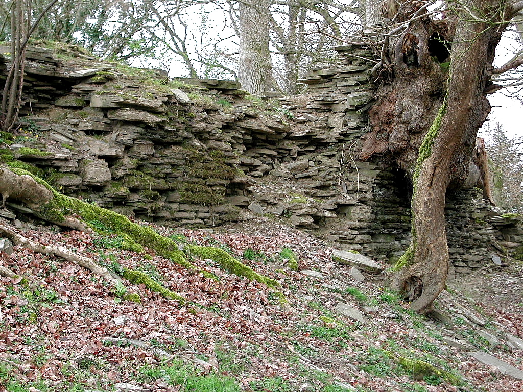 Below: view of the ruined curtain wall and north east tower at Aberedw II