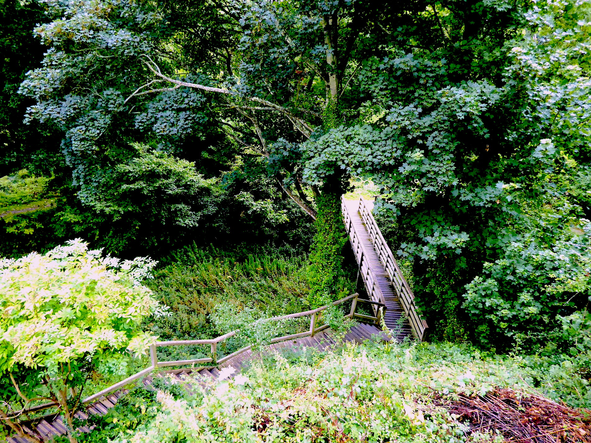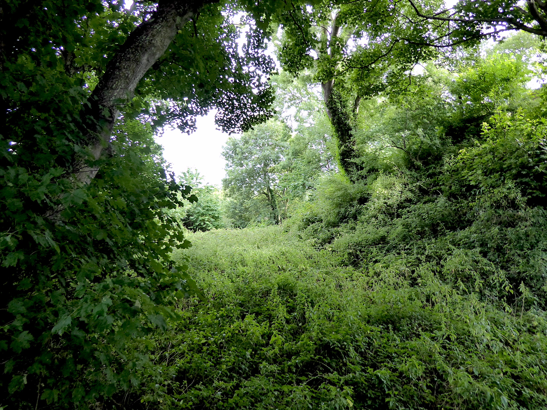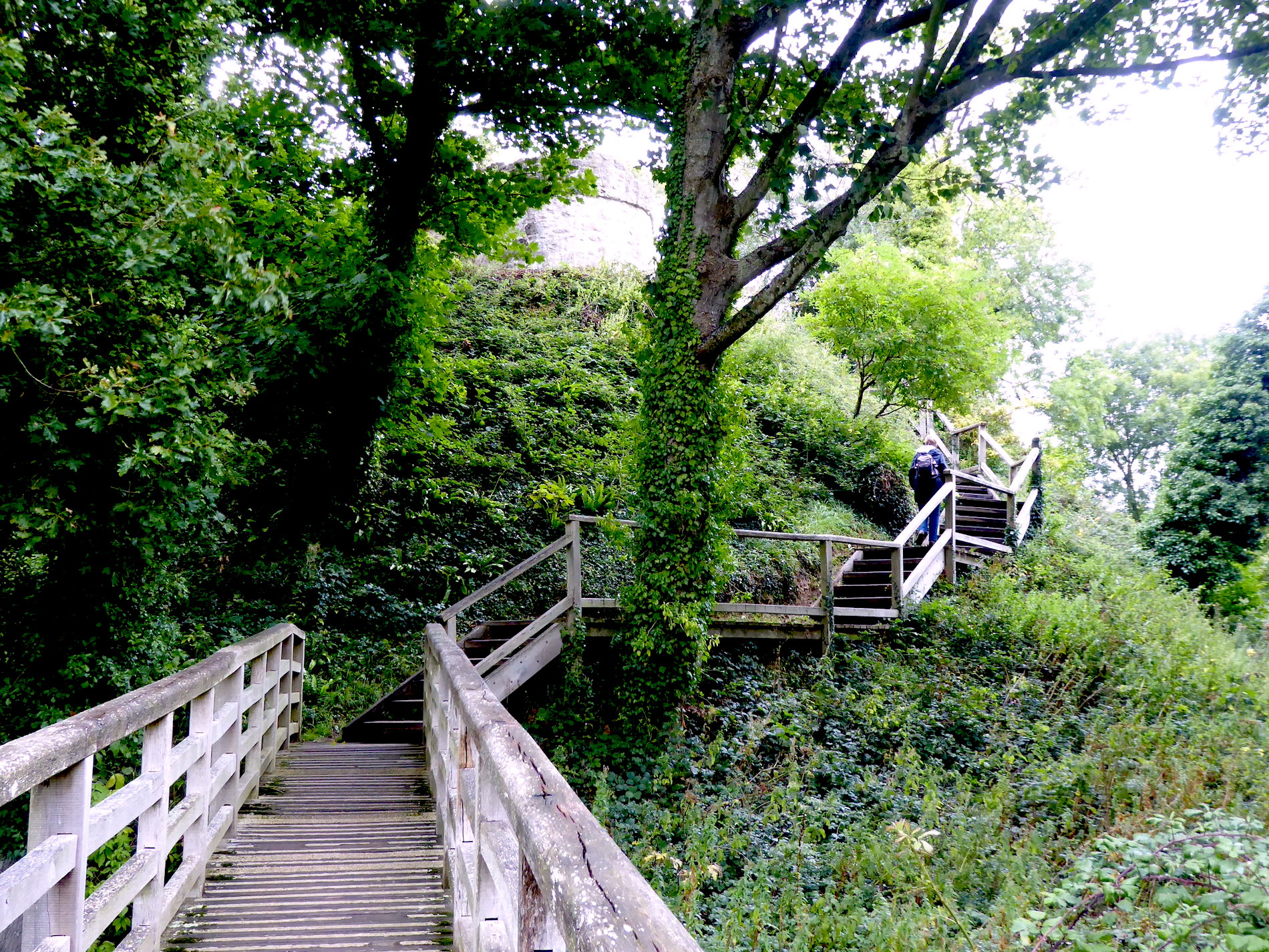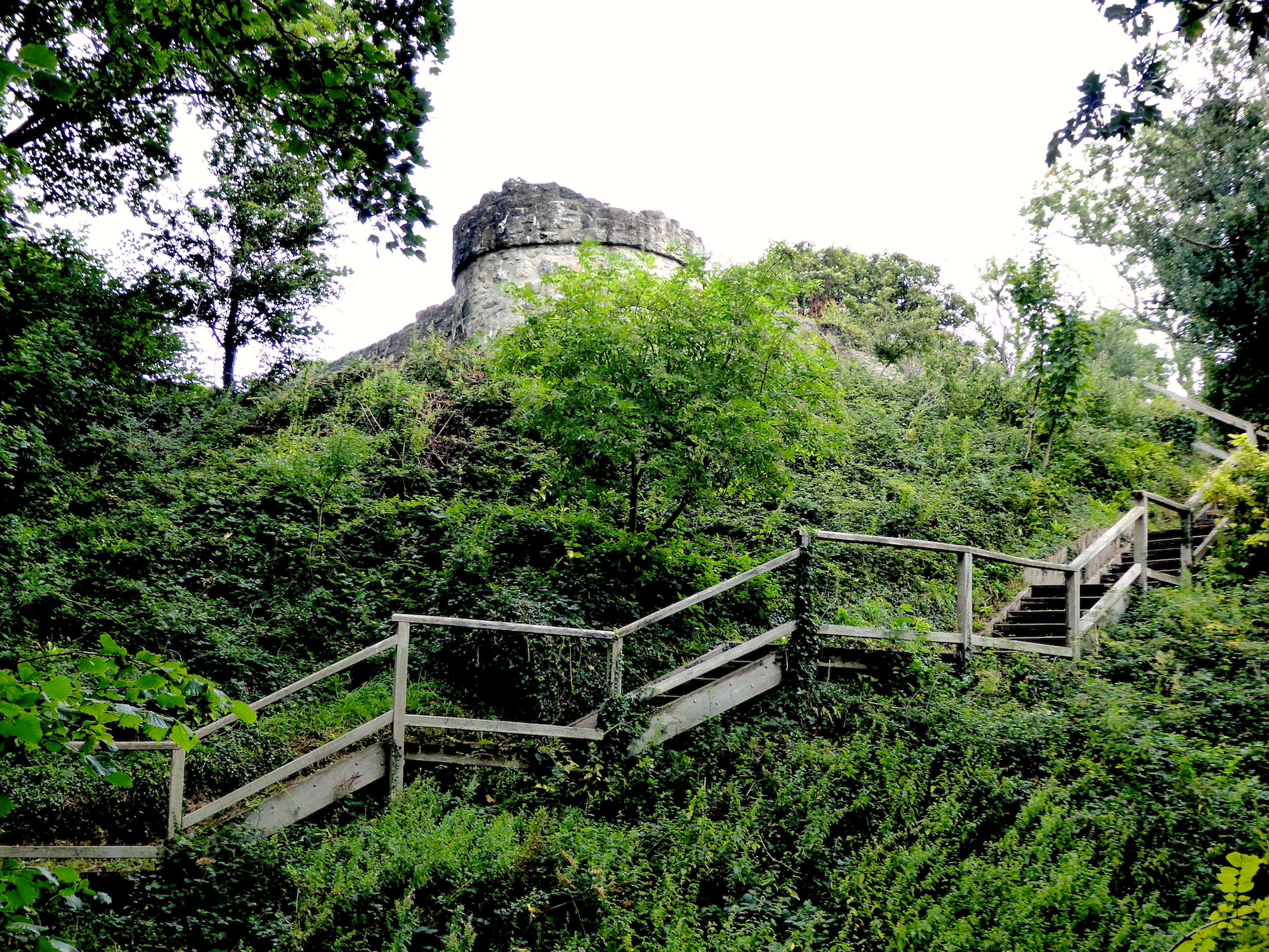 A fine motte with a hint of a bailey to the south. This one is a documented Norman castle, built by Hugh de Avranches. It is surmounted by a square stone keep used, and possibly built, during the Civil War (1642-48) as a base for gun-running, originally Royalist, then Parliamentarian. A Guide to Ancient and Historic Wales: Gwynedd, Frances Lynch, Cadw: Welsh Historic Monuments, London, 1995. Additional Photographs of Aberlleiniog MotteAbove & below (2): the walkway approaching the motte Below: views from the summit of the motte