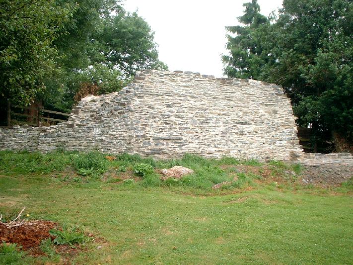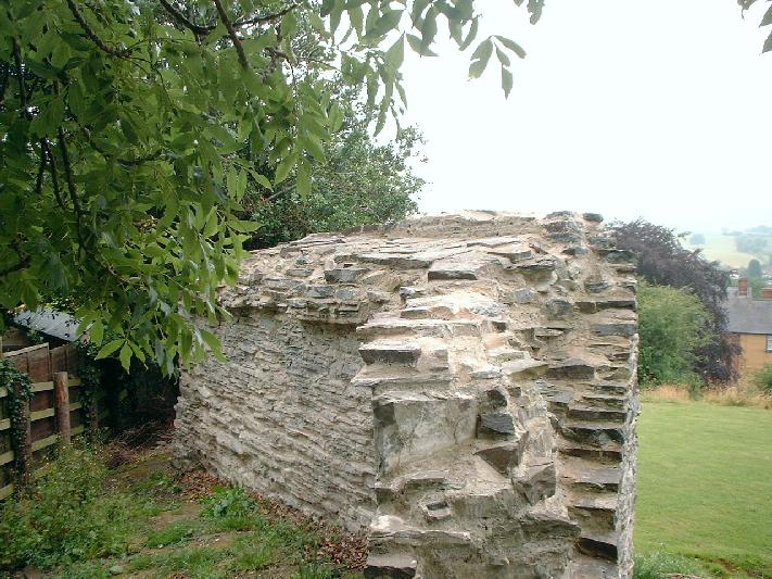 This was a motte castle, probably originating from the 12th century. A shell enclosure was constructed at a later date, and the remaining fragments of stonework down the slope of the motte suggest that there was probably a wall connecting the shell to a curtain round the bailey. Fragments can be seen near the Castle Hotel.