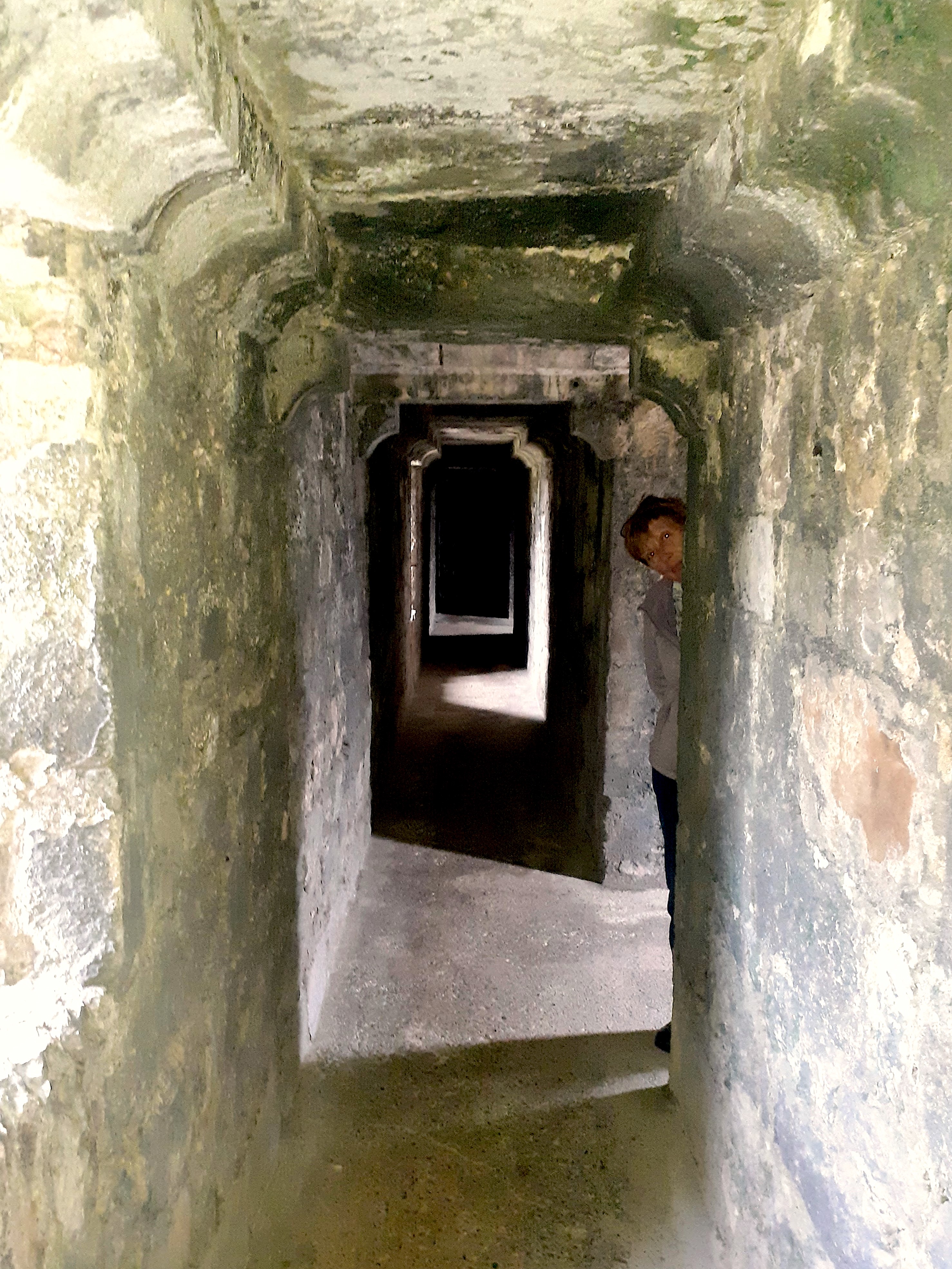 Below: view of Caernarfon's interior passageways (L), and partial view of the King's Gate with statue of Edward II (R).