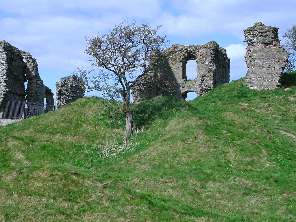 Below: (2) surviving piece of curtain wall (left) & view of the countryside from the summit of the castle (right)