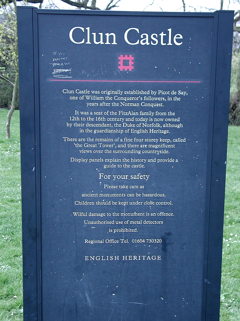 In 1196, Clun Castle was besieged and burned by the Welsh, under the leadership of the great Lord Rhys in 1196. However, it became the property of the prestigious Fitzalan family, who modified the structure into its present form (sans ruins!) and is responsible for the establishment of the associated village. The Fitzalans, lords of Clun and Oswestry, are better known as the Earls of Arundel, builders of mighty Arundel Castle in Southern England. Arundel is now the home of the Dukes of Norfolk, but many of the Fitzalans are interred in the adjacent chapel. While Clun Castle pales in comparison to the Fitzalan's fortress at Arundel, it is a marvelous example of a Marcher castle, intended to keep the unruly Welsh under Norman control.