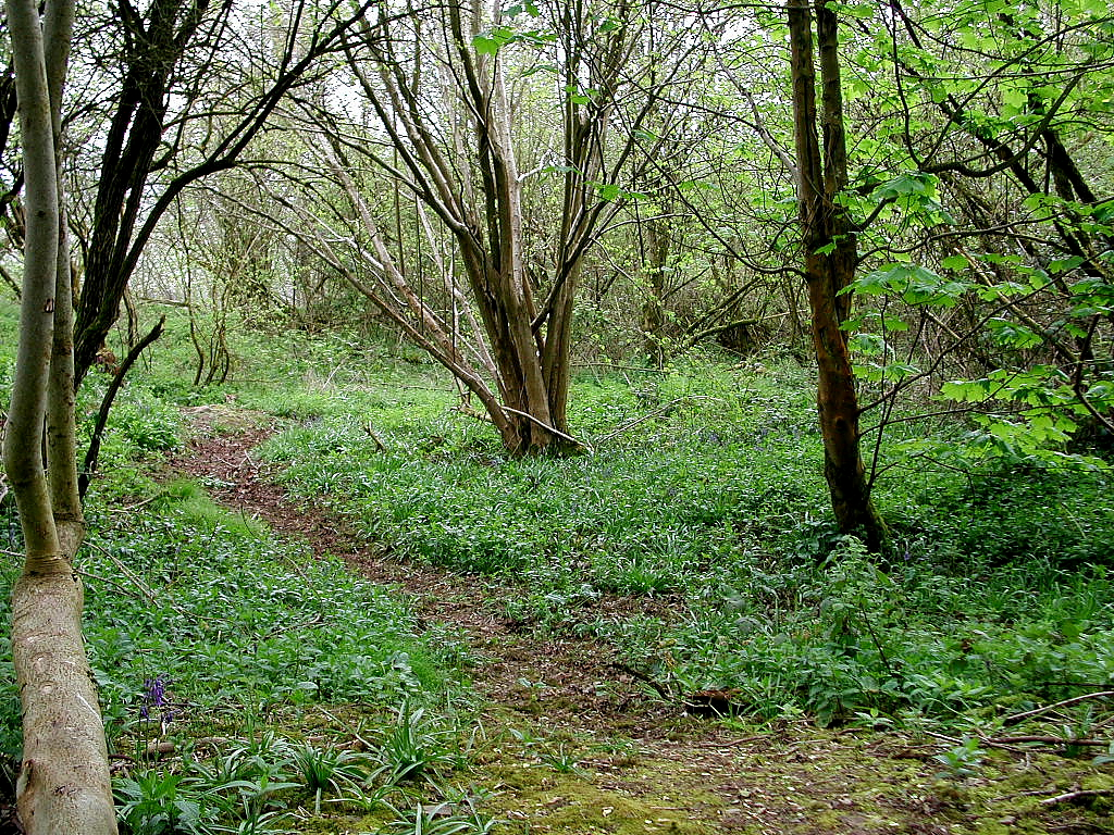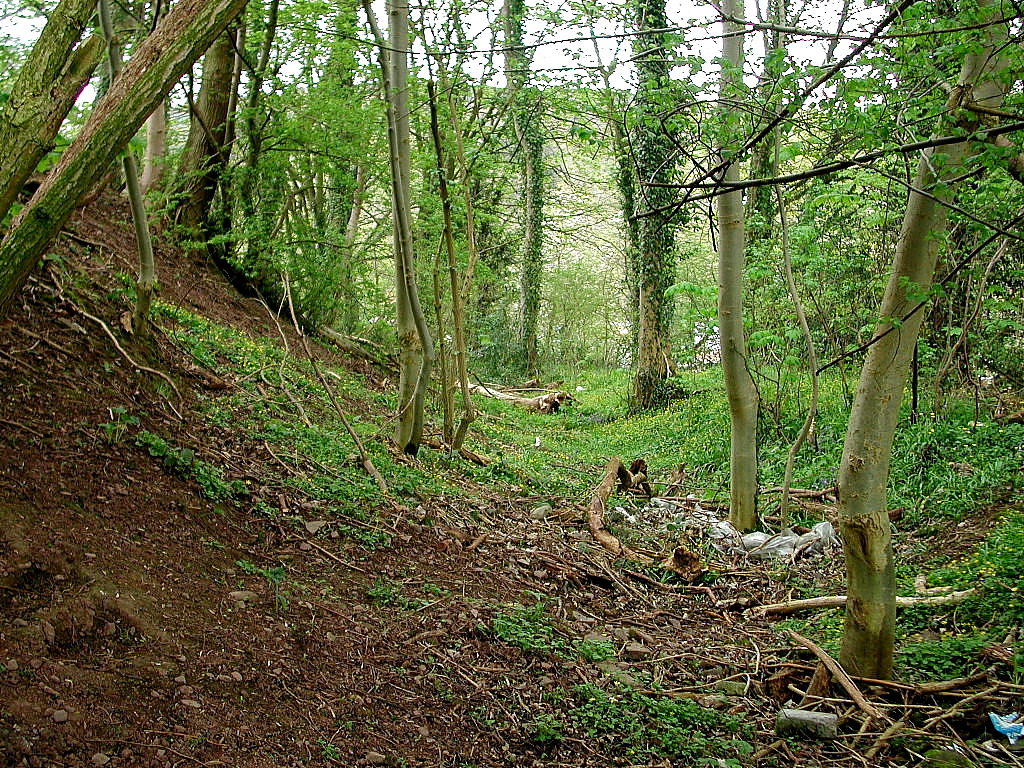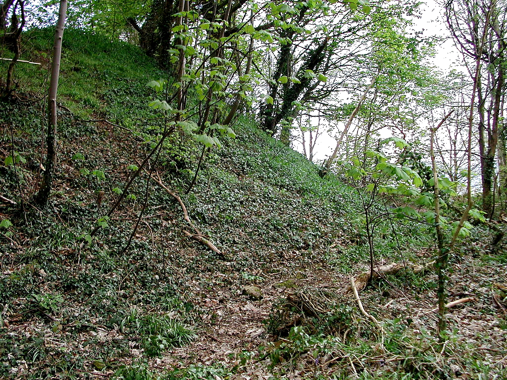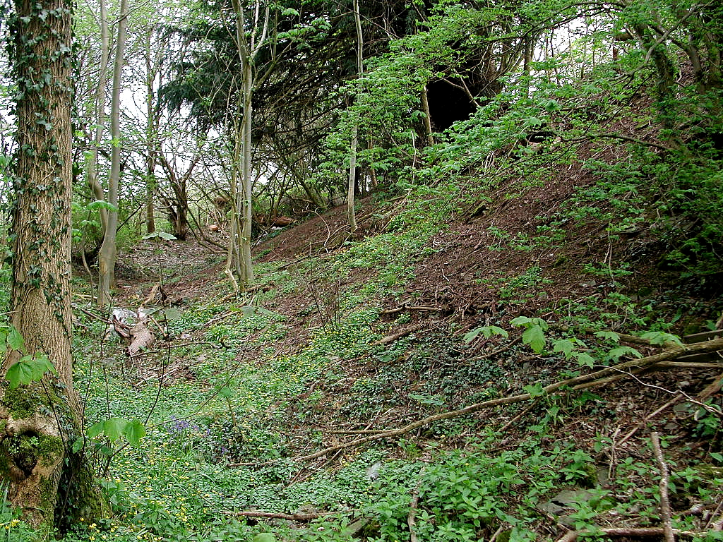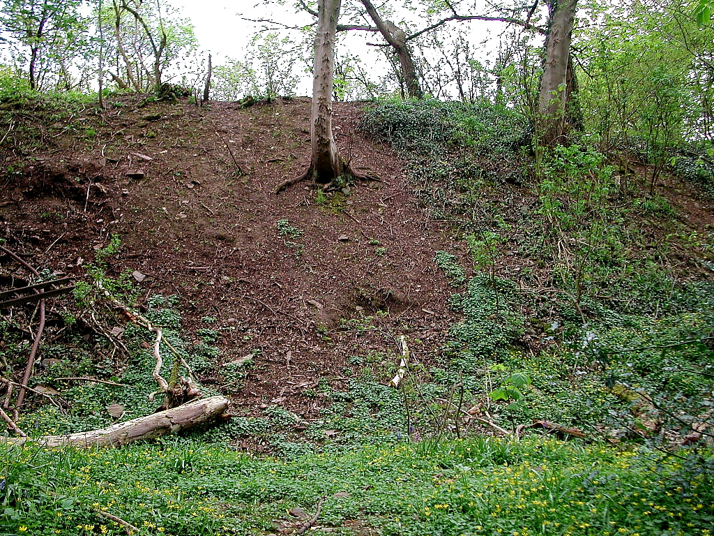 seen to the right of the photo, and the ditch surrounding the motte is visible at the bottom left.