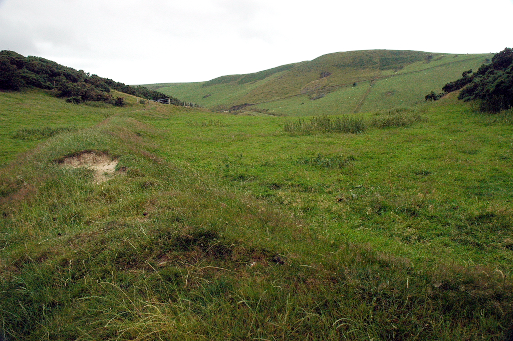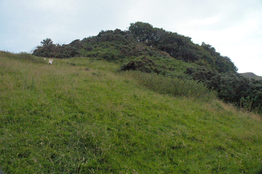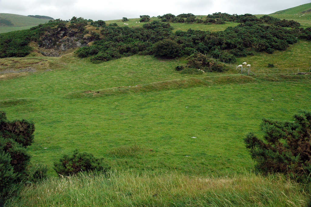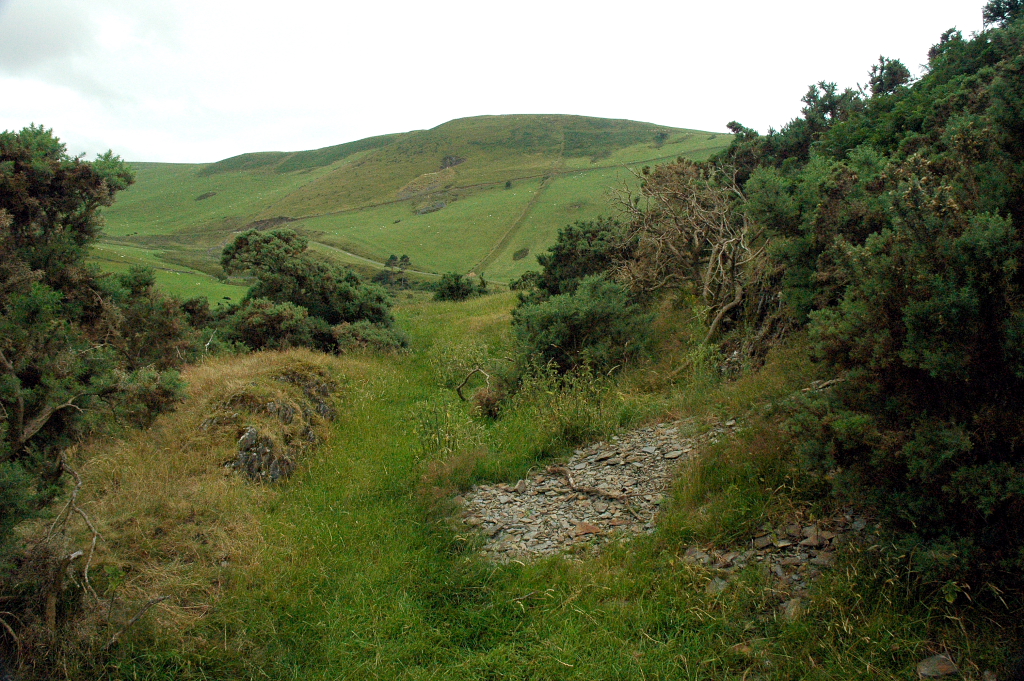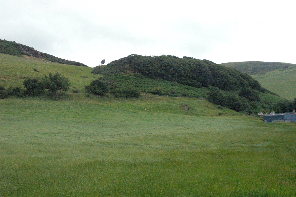 Castell Cynfael, does not fit into this pattern, but was a Welsh-built castle representing the period of Welsh recovery following the expulsion of the Normans. It differs considerably from Domen Ddreiniog in its site and construction. It is placed on a steep spur towards the south western end of a major upland ridge along the southern limb of the Bala, or Tal-y-llyn fault. The spur has formed between two north-westward flowing streams from the watershed - Nant Braich-y-rhiw to the north east and Nant Cynfal to the south west. The site commands a good view of the Dysynni crossing,, and the strategically important junction of the Dysynni and Fathew valleys. The castle mound has been built by cutting off the hillock at the end of the spur with a deep ditch. Lynch, in the Guide to Ancient and Historic Wales says "it is known to have been constructed by Cadwaladr in 1147".