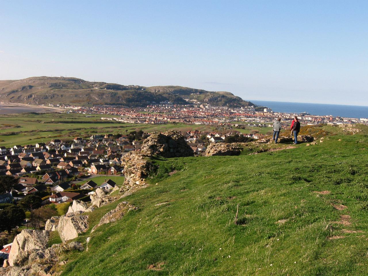 The accomodation block at the north-west corner of the upper bailey with Llandudno beyond it.