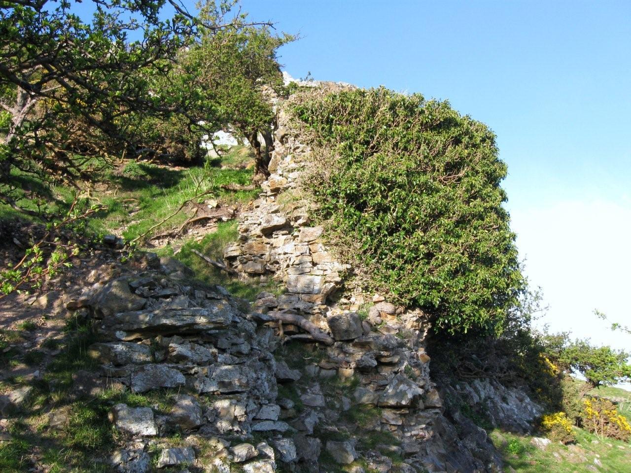 The southern bailey wall as it climbs the smaller hill towards Mansell's tower.