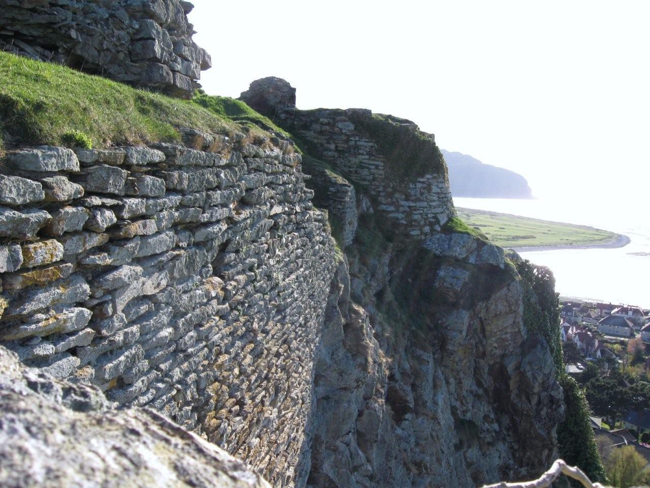 Above: view of the Welsh-built revetment wall and tower base of the upper bailey of Deganwy Castle