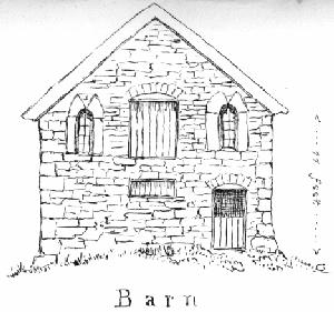The aged yew tree whose roots are twined round a large fragment of the walls of the castle, shews that it must have been in ruins for some centuries; and it may reasonably be conjectured that, as the times became more settled, civilisation more advanced, and buildings of a more commodious and luxurious description began to be erected in the reign of Edward III, the living in the cramped accommodation of an ancient hill fastness was no longer found convenient, and that in consequence a more commodious dwelling was erected at the foot of the hill for the residence of the family; the hill fortress either being, suffered still to remain for a time, to be used in case of need, and so allowed to go gradually to decay, or as was most frequently the case, serving for a quarry from which stones could be more easily procured for the erection of the new structure, which will account for the almost entire destruction, and unintelligibly confused state of the remains of the old Castle. And it is by no means improbable that, the old Church having been in a dilapidated state, a new Chapel may have been erected adjoining the new dwelling-house, which the two existing windows in the pine-end as seen in the illustration may have served to light, the door beneath them now blocked up having been the entrance; this supposition will account for the present building having been called a Chapel, the remains on the hill "the old Chapel" and the wood, "the Church wood.