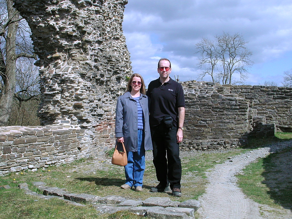 Jeffrey & Parthene Thomas at Dolforwyn Castle, April 2002.