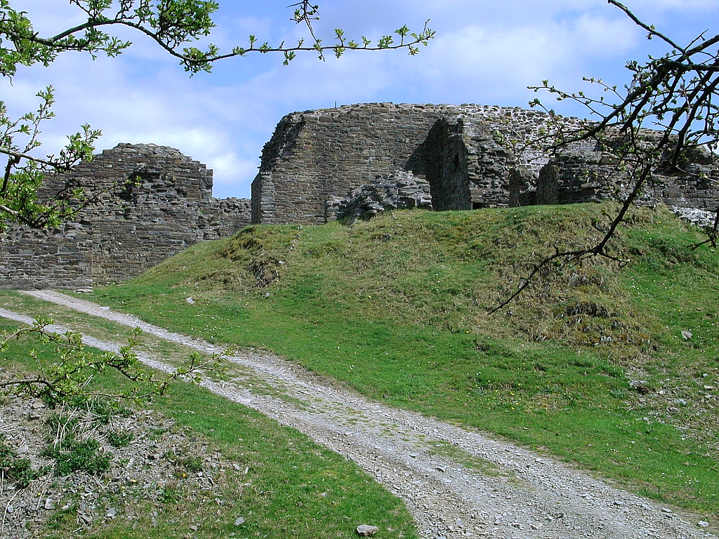 Dolforwyn stands on a wooded hill overlooking the fertile Severn valley, a scene so peaceful today that it is hard to picture it as one of political animosity or military action. It was built between 1273-77 by Llywelyn the Last as a forward position in his territory, and overlooking the English lordship of Montgomery. This rectangular castle crowns a ridge along the Severn valley, and was obviously designed to act as a sentinel over Llywelyn's south-eastern frontier. Its initial construction led Edward I to write to Prince Llywelyn in 1273, forbidding him to build the castle. The prince replied, with a masterpiece of ironic politeness, that he did not require the king's permission to raise a stronghold in his own principality. Dolforwyn was, however, taken by Roger Mortimer after a fortnight's siege in 1277, and given to the Mortimers, a powerful marcher family. The castle was kept in repair for some years, but was ruinous by 1398. Llywelyn's fledgling town on the ridge to the west of the castle was suppressed under the English, who did not welcome competition with Montgomery. Instead, Roger Mortimer founded Newtown in 1279 on a more suitable site nearby.