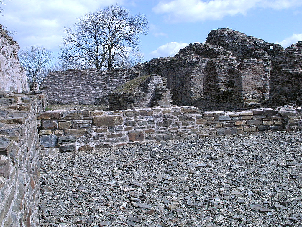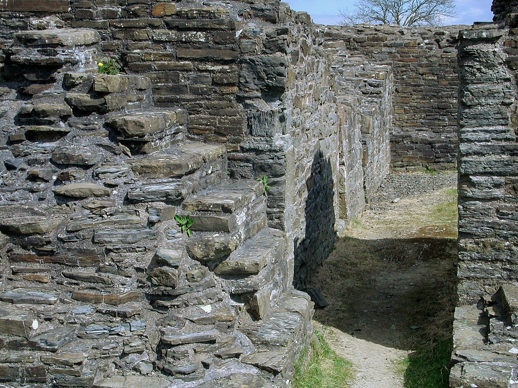 The excavations showed that repair work had been carried out to the masonry of the keep and it had been divided internally. These may have been the repairs recorded after the castle was captured by the English, since some of the materials used can be traced to sources in English hands. Excavations also indicate that ranges of buildings lay along the southern and northern sides of the courtyard. Stone balls, which may have been fires from English siege engines in 1277, have been found scattered at the site.