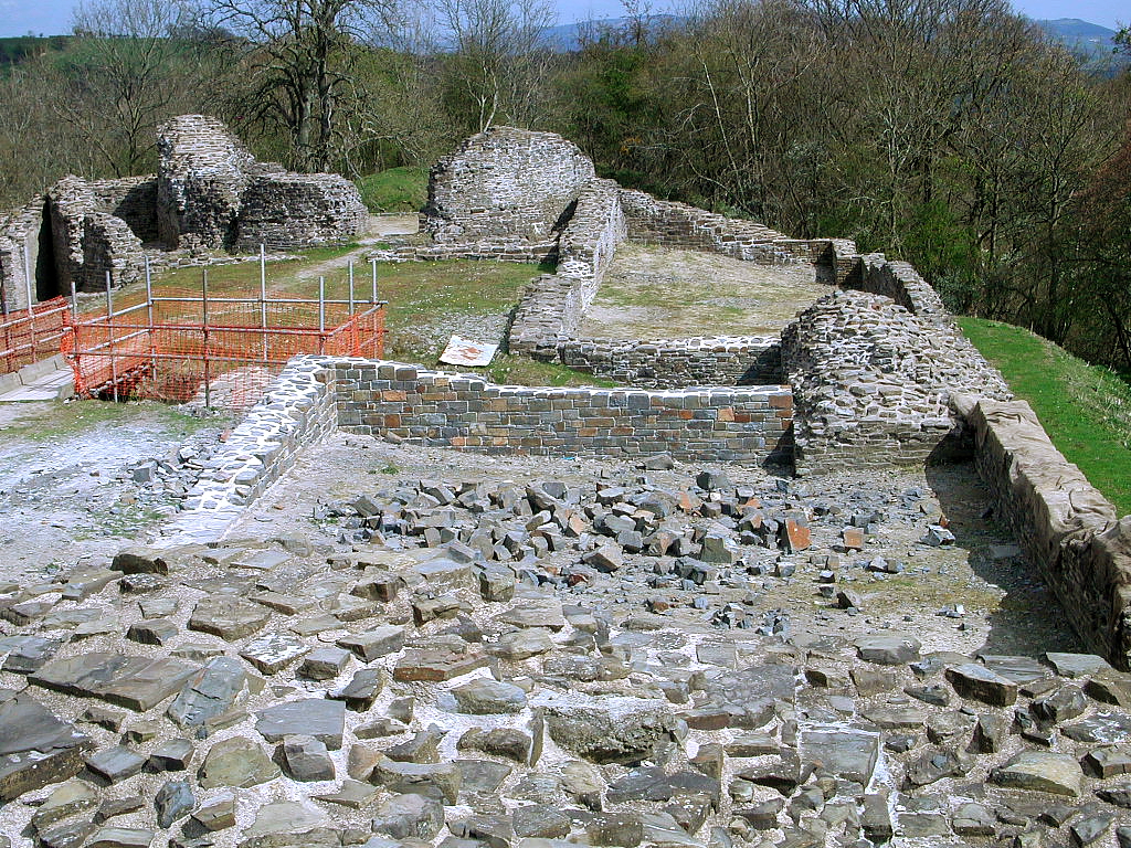 The castle was not exactly easy to find, but with the help of my trusty OS map (yet again) we found parking near the base a hill and began our ascent. We ascended via a steep path through the woods. The trail up the hill finally broke out into the open countryside and led to a mound on which we saw the remains of the castle. It was obvious that, although the castle was still fragmentary, a lot of excavation had already taken place; a lot of Dolforwyn had already been uncovered and was seeing the light of day for the first time in centuries. We saw long stretches of fairly tall curtain wall along with the remains of what were once impressive towers, including the low ruins of a trademark Welsh D-tower. We went through the gatehouse and entered the inner ward. Here we were very careful to not disturb areas being excavated and those that had been marked off for excavation. We watched were we were stepping. In the Courtyard we viewed the fairly substantial remains of the Keep and the fragmentary remains of the Round Tower at the opposite end of the castle. The Welsh D-Tower was being excavated and stood at a height of about 10 feet. The remains of the northern curtain wall were substantial rising to a height of about 15-20 feet. Like Montgomery, we saw the same outstanding views of the surrounding hills. Outside the castle were the wide open spaces of the bailey, and I seem to remember that Llywelyn also founded a town somewhere close to the castle. Although when we visited the castle the ruins were still slight, being able to see this much of Dolforwyn was special, especially after centuries of being buried underground.