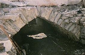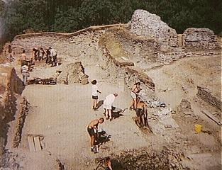 Left: south entrance under excavation, 1994. The rear wall represents alterations by the English in 1277.
