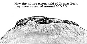 The Dark Age Fortress In the 6th century a man called Cynlas Goch ruled the kingdom of Rhos. He was born around 490 AD, the son of Owain Danwyn (Owen White-Tooth) who had lost his kingdom to Maelgwn, King of Gwynedd. Gildas, the 6th century monk and early historian, referred to Cynlas as a usurper and evidently had little respect for the man. "You Bear, rider of many and driver of the Chariot of Dineirth" he said and blamed him for starting a civil war, which was perhaps launched in an attempt to liberate Rhos from the Kingdom of Gwynedd. The road that runs around the western half of the hill is still called Dinerth Road and the old name for the hill was Din-Arth (The Fortress of the Bear). This hilltop site was the real Llys Euryn. The Gwynedd Archaeological Trust had excavated the llys and set up a display of information boards about it in Colwyn Bay Library. It seems that in common with many other hillforts in post Roman Britain, this earthwork, which was perhaps already 800 years old, was refortified during the Age of Arthur. An oval enclosure was built in the 5th century at the highest point of the fort to form a sturdy inner sanctum. Along with the surrounding Iron Age enclosure, a layout similar to the motte and bailey castles of the Normans was achieved and the same arrangement can be seen just a few miles up the Conwy Valley at Pen-Y-Castell, on a rocky ridge high above the village of Maenan. |