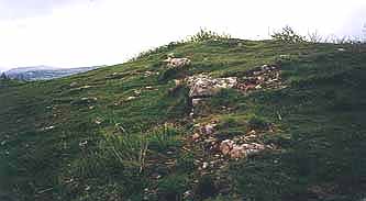 The remains of a well-constructed drystone wall peep out through the shallow turf at the very top of the hill.