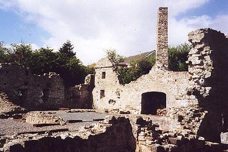 | The remains visible today are of the fortified manor house built for Robin, eldest son of Gruffyd Goch who led the old Welsh tribal division of Rhos. It was a large and very well appointed building for its time and was fortified because of the invasions of North Wales that occurred during the Wars of the Roses. The hall was improved during its peaceful first hundred years but the family fortunes declined and it was sold to pay off debts. By 1763 it was probably derelict, robbed of any useful material until it became a mere shell. |