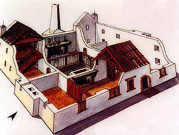 | Below: The south wall of the mansion has accumulated a thick layer of earth against its outer face over the last five hundred years. The original ground level can be seen within the building at the right of the picture. |