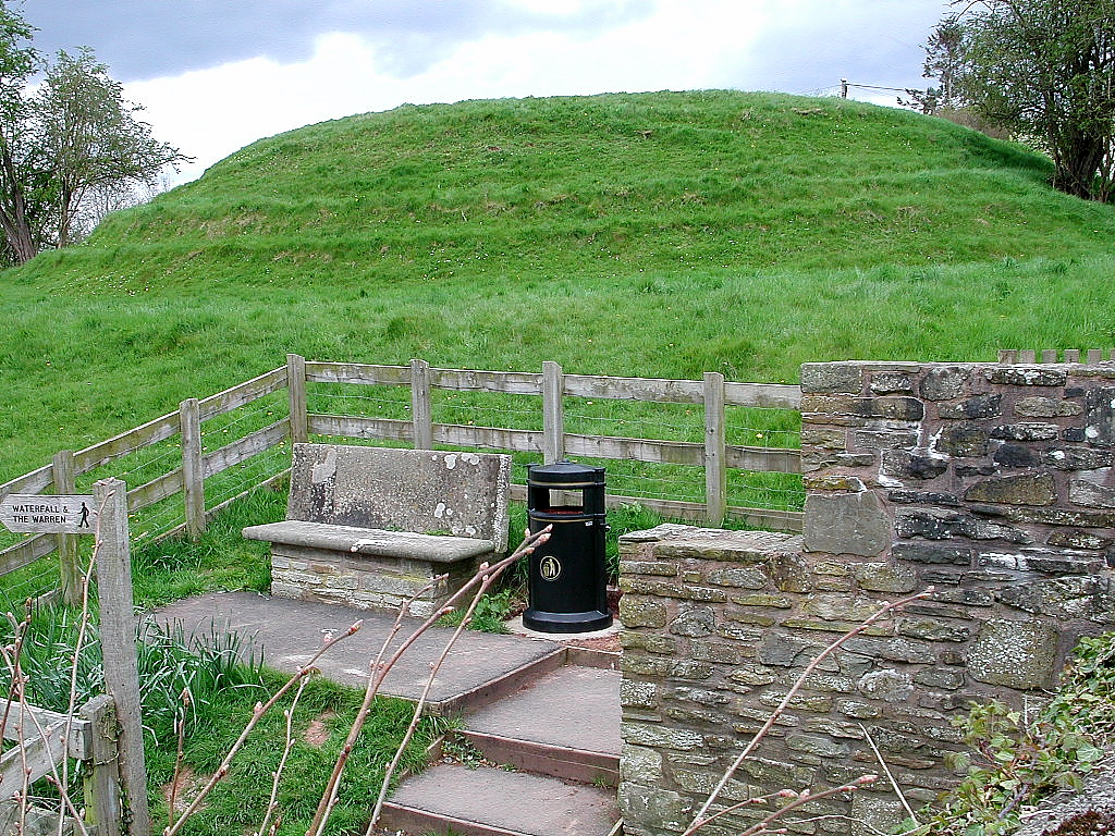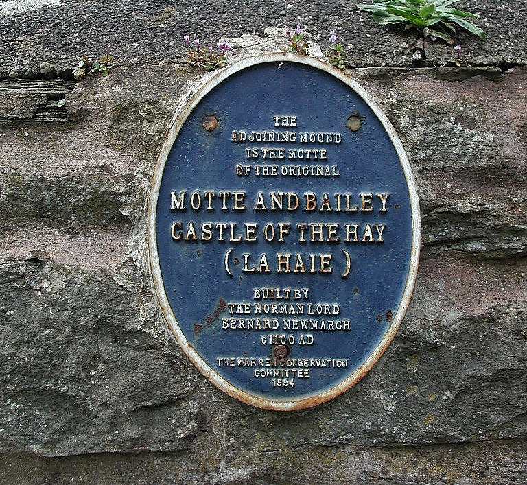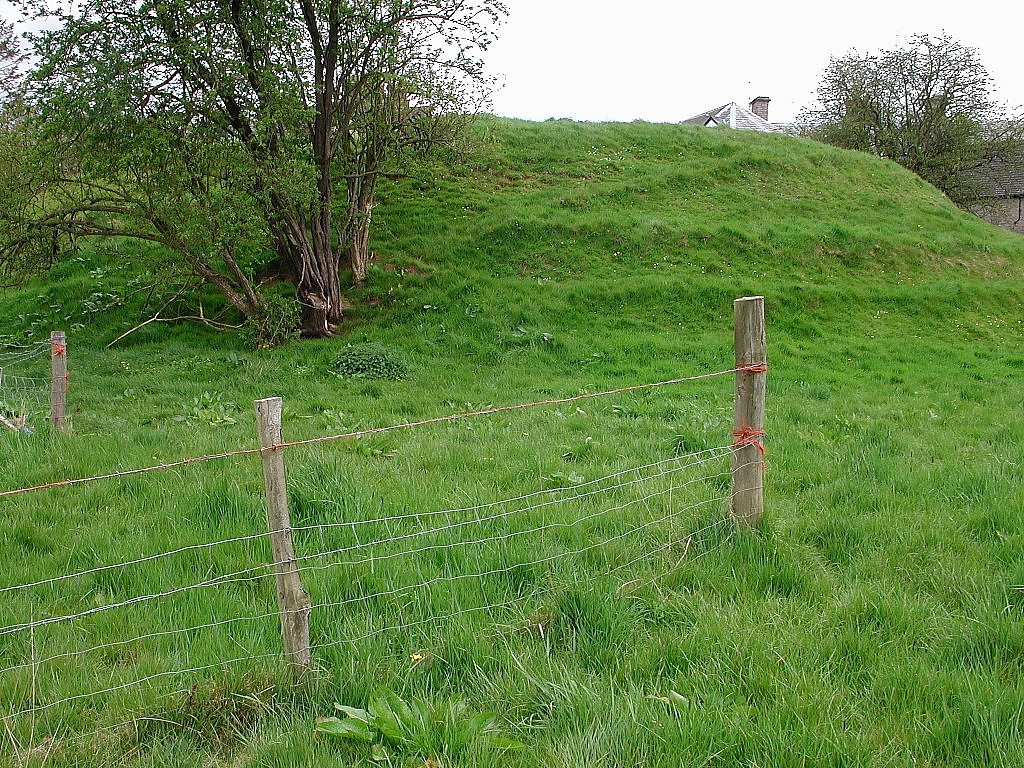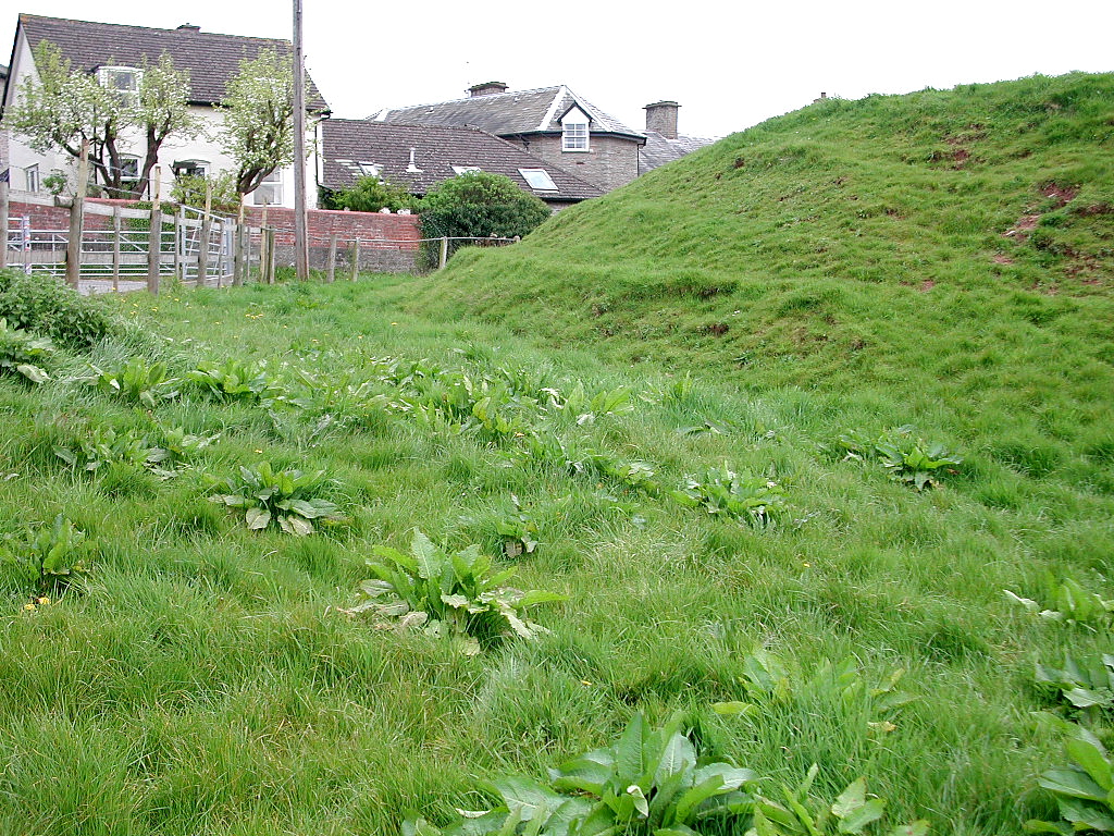 This small but well-preserved motte is 3m high with a summit of 20m across lying close to Saint Mary’s church on the western edge of the town of Hay-on-Wye. The site overlooks a gorge and small stream leading to the Wye. A recently-levelled platform to the northeast may have once been the castle bailey. (Remfry). The motte castle at Hay may have been the work of William Revel, a knight of Bernard de Newmarch. The castle was perhaps the seat for the manor of Melinog and was likely held independently from the nearby masonry castle, the two castles probably being occupied simultaneously (Salter). It is also possible that the motte and Hay is somehow related to the similar motte and bailey found at nearby Clyro.