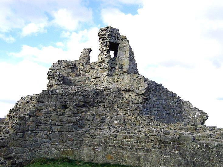 The two rectangular holes in the inside face of the north-east tower once supported a hood around the fireplace.