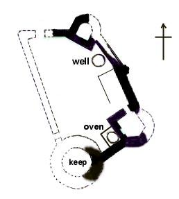 The keep stood upon the rocky boss to the right of the picture and the oven can be seen