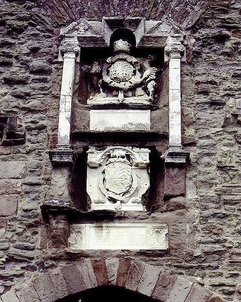 Below: carved set of arms found over the entrance to the inner bailey at Ludlow Castle