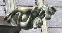 a gargolye (left) & a carved figure on top of the Marten Tower (right)![]()