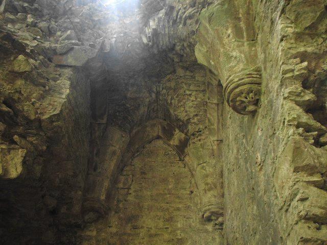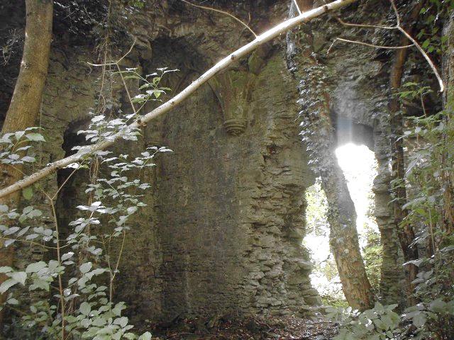 No stone buildings now remain visible on the motte and bailey site near Castle farm but the buildings referred to in 1262 may have stood there. Further masonry construction in 1286 probably refers to the present ruin on the tree-clad hill above. It is thought to have been still incomplete when Gilbert de Clare V was killed at the Battle of Bannockburn in 1314. However, the William’s family, who purchased the estate from the Crown in 1554 and erected a new house, had a garrison of 60 in the decayed castle in 1648 and its state may be the result of some slighting by Parliament.