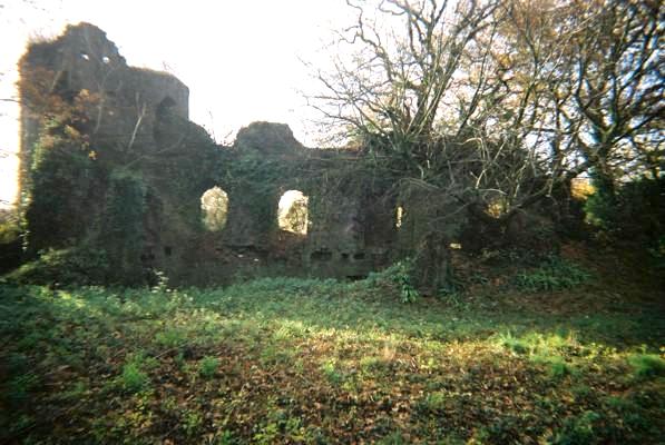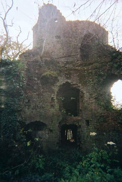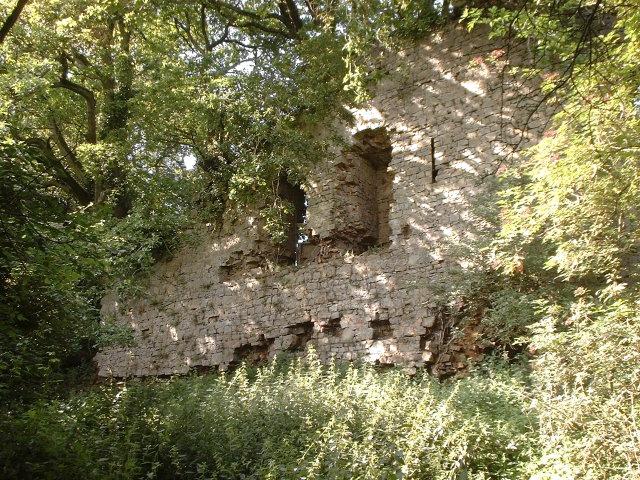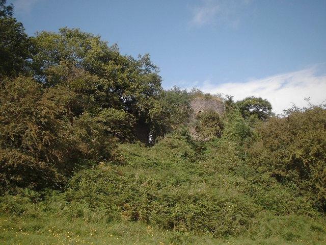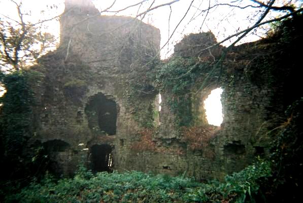 Mike Salter 1991In the grounds of a house above the church are the overgrown fragments of a castle probably built by Sir Ralph Monthermer in the second half of the 13th century, on the site perhaps used in the 12th century by Payn Fitz-John. In the late 14th century the castle passed to the Montacutes. It went to the crown after the execution of Margaret, wife of Sir Richard Pole, in 1541, and was sold to Edward Woodward in 1610. He in turn sold it to Rhys Kemeys. Parts of two round towers, a gatehouse and additions of the Tudor period are said to remain but little can now be recognized.