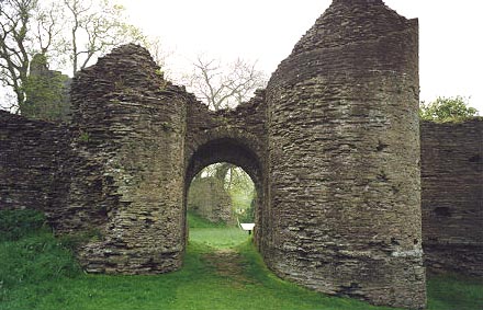 Longtown Castle was built in the 1180's by the Norman lord, Walter de Lacy, inside a rectangular earthen enclosure that may date to the Roman occupation of Britain. Fortified during the 12th century, the rectangular enclosure was bisected by another earthen wall, forming the two outer baileys of the castle which sat side-by-side to the south of the motte. In addition, a twin-towered gatehouse, protected with a portcullis, was added to the new outer curtain which enclosed the rectangular area. The gatehouse still exists, though extensively ruined.