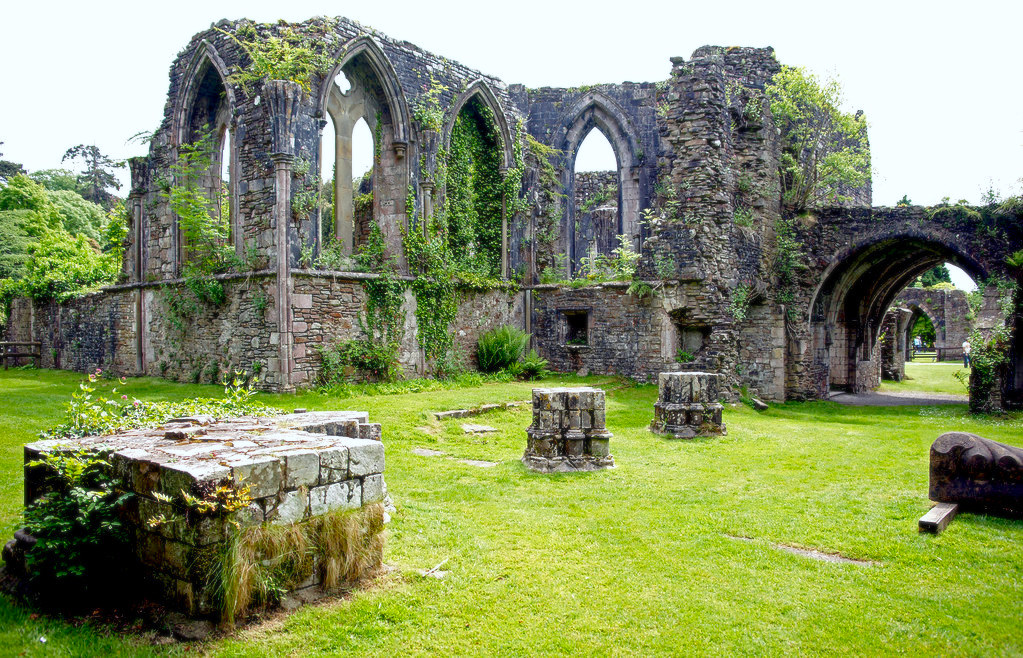 This was a center of Christian worship for more than 1,000 years ago, when monks of the Celtic Church had a monastery here. Their timber or wattle buildings were swept away when Robert the Consul, Norman earl of Gloucester, granted the land to Cistercian monks from the French abbey of Chirvaux for the founding of a daughter house. The abbey took 40 years to build and was the largest and wealthiest in Wales in the 12th century. The exterior was extensively altered during renovations last century, but the deeply recessed doorway, flanked by banded shafts carrying carved capitals, belongs to the late Norman period around 1175-80. So do the three round-headed windows above.