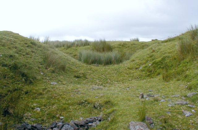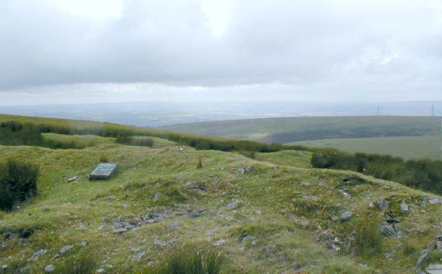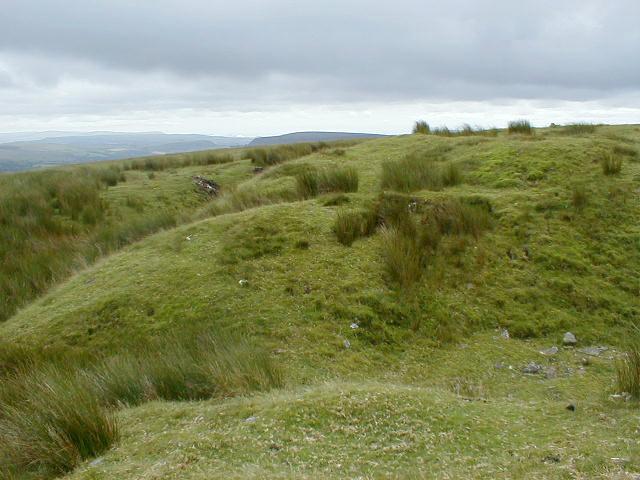 This was probably a late 13th century stronghold garrisoned by a Marcher Lord against one of his rivals, and is unlikely even to have been a permanent fortification. It perhaps had two square towers, but these were probably made of dry stone walls, as there is no evidence of mortaring. The flat platform forming the castle base was defended by deep ditches, and there are impressive views from the summit (the name means "summit of the place of the castle"). Alan Reid, The Castles of Wales, 1973