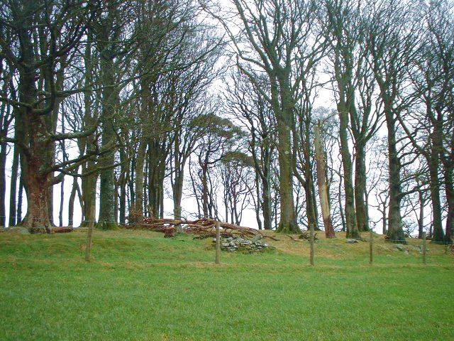 Large motte, bailey small and doubtful, distinct trace of ring-wall, abandoned by 1198. Thought to be a scarped natural hill: an oval mound, c.35m NW-Se by 30m & 7.5m high, having a level summit, 20 NW-SE by 12m, set within an irregular scarped area, c.90m NW-SE by 54m, the whole damaged by quarrying on the NE.