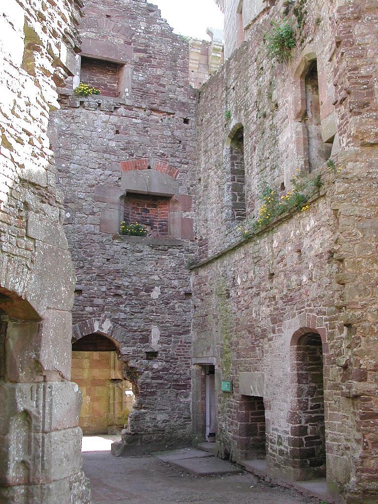 Below (2): two views of the castle and beautiful surrounding countryside from the top of Raglan's Great Hall.