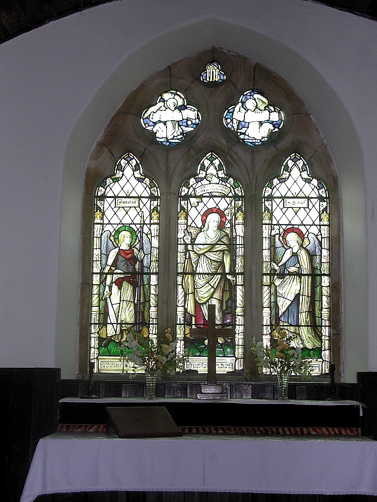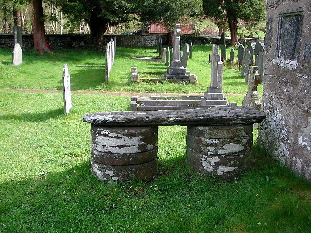 The church of Saint Michael lies in the shadow of the Welsh stronghold of Castell y Bere, near the village of Llanfihangel-y-Pennant in Gwynedd, north Wales. The church is known for its association with Mary Jones, 1784-1866, the local girl who in the year 1800, at the age of 16 walked barefoot from Llanfihangel-y-Pennant to Bala, (some 26 miles) to procure from the Rev. Thomas Charles, a copy of the Welsh Bible. The church vestry displays details of her life and a monument stands in the village. Also in the Vestry is a relief map (made in patchwork by a group of local ladies) of the Dysynni Valley. The old font at St Michael's church, believed to be from Castell y Bere.