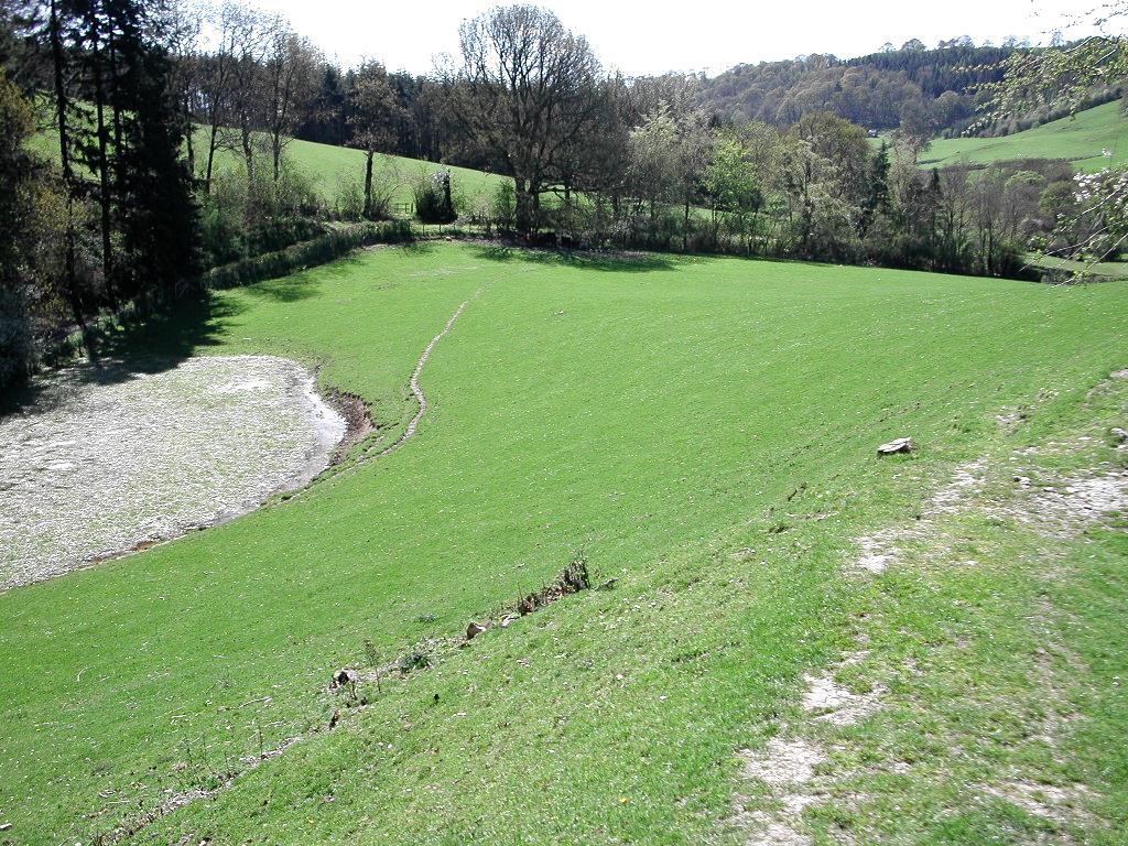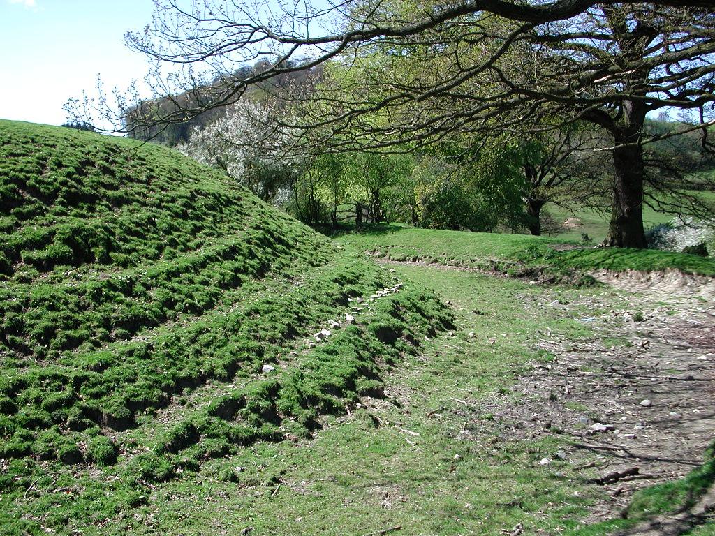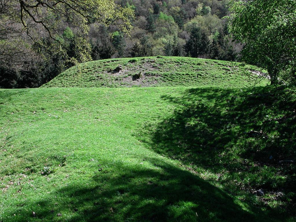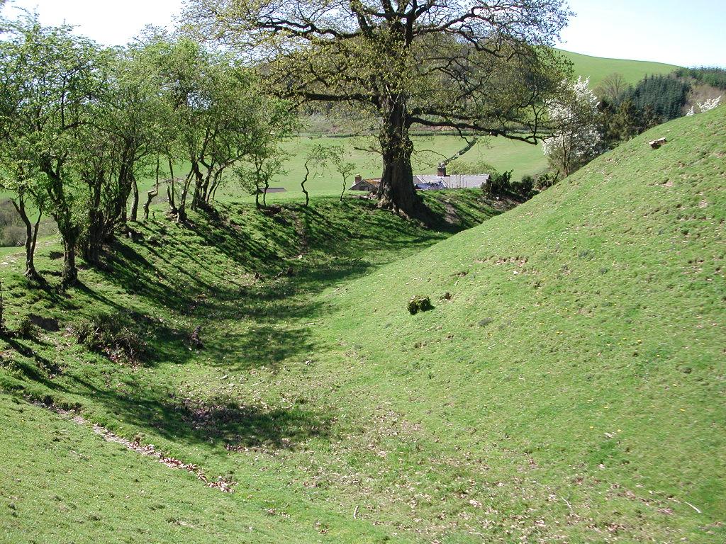 Fodd bynnag, mae archwilio'r safle sy'n uniongyrchol y tu draw i'r fferm yn fwy gofalus yn datgelu olion cloddweithiau castell tomen a beili, ei amlinell bellach yn cael ei chuddio gan nifer o goed a thyfiannau eraill. Ymhell o fynnu sylw'r gwarchgeidwad etifeddiaeth a'r twrist fel y gwna adeiladau Edwardaidd monolithig, mae'r cyn-gaer hon yn gorwedd bron yn angof yn ei safle gwledig.