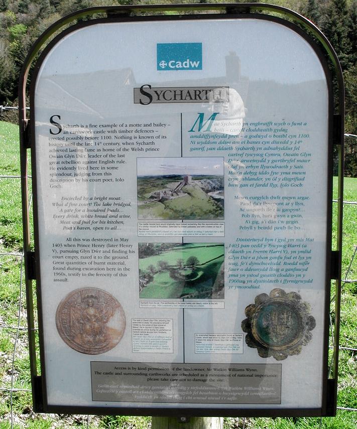 Cyn belled ag yr oedd Owain Glyndwr yn y cwestiwn, nid oedd neb yn fwy toreithiog na Iolo Goch, ac mae llawer o'i gerddi ar gael i ni. Mae 'Llys Owain Glyndwr' yn cyfeirio'n arbennig at Sycharth. Yn ei lyfr Iolo Goch: Poems, disgrifia Dr Dafydd Johnston y gerdd hon fel un 'ddifyr iawn ar lefel arwynebol fel portread o dy hardd, ond gorwedd ei gwir rym yn arwyddocâd symbolaidd y disgrifiad fel adlewyrchiad o drefn gymdeithasol ddelfrydol'. Mae'r gerdd yn rhoi sylw manwl i adeiladwaith y castell a disgrifiad o'r cyffiniau. Beth sy'n fwy arwyddocaol, fodd bynnag, yw'r darlun a roir i ni gan y bardd o gartref rhadlon, cynnes a gwahoddgar ble y croesewir pob teithiwr didwyll â chynhaliaeth, lloches a chymdeithasgarwch.