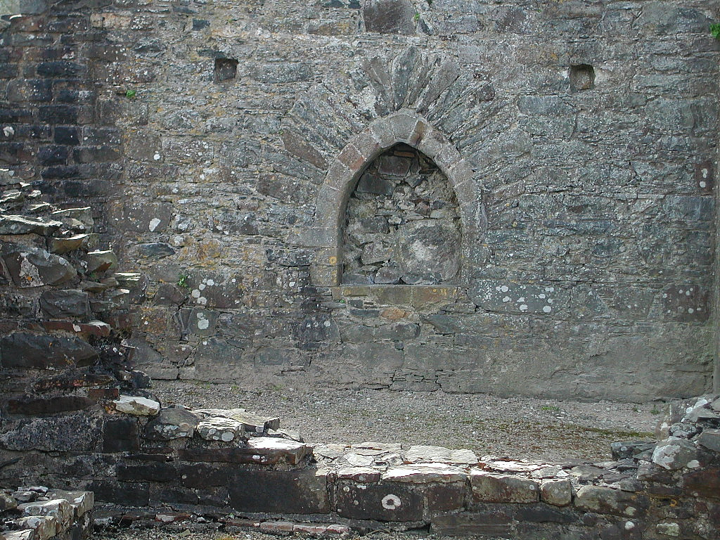 Below: detailed view of the crossing tower at Talley Abbey. Upper passages that ran through the walls can be seen near the top.