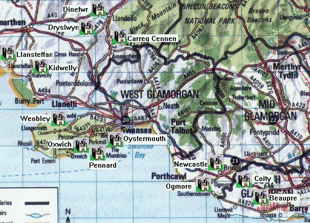 This partial map of Wales shows the locations of what many consider to be the important or major castles for this section of south Wales. A castle icon has been placed at the approximate locations. Select castles by either clicking directly on the map, or from the list of castles below the map.