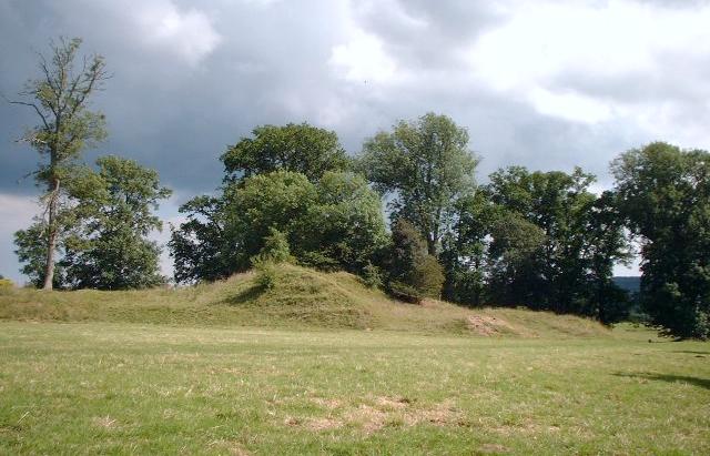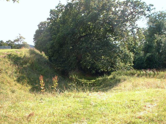 An enclosure of earthworks that was captured in 1138 and mentioned in the Pipe Rolls for 1186-7. The earthworks included double ditching. The later stonework is believed to have consisted of a quadrangle with corner and mid-wall towers, gateway and a great tower, but only the earthworks remain today. Plantagenet Somerset Fry, Castles of Britain and Ireland, Abbeville Press, 1996.