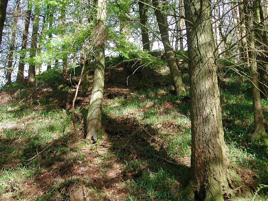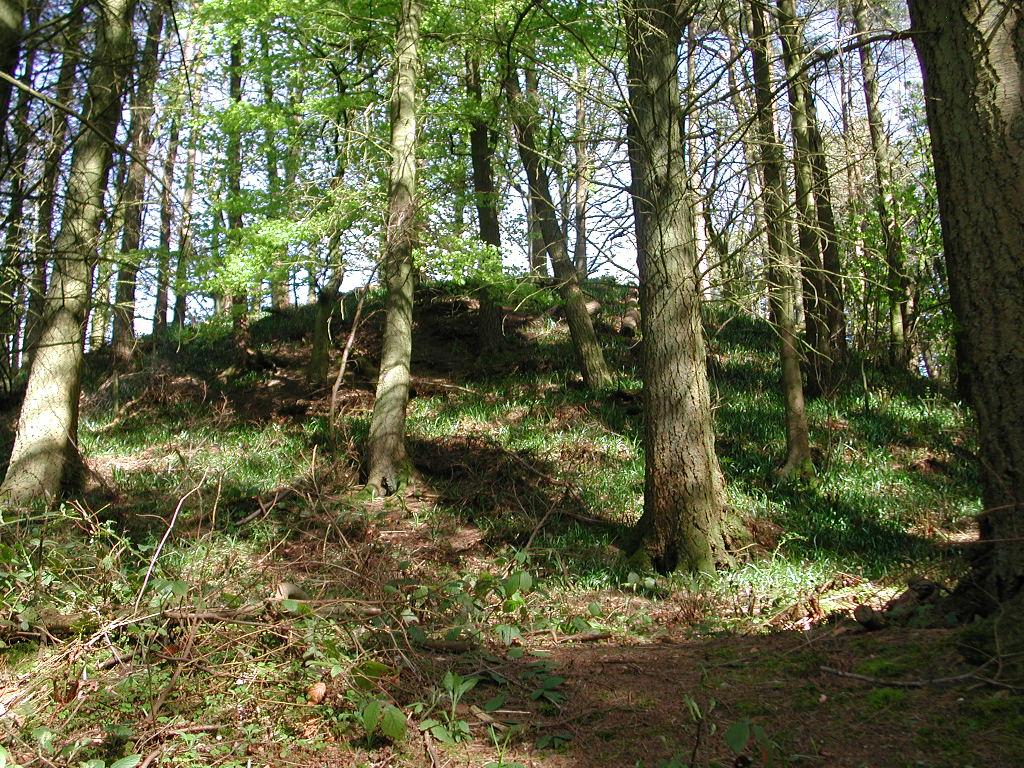 Above & below: the tree-clad motte viewed from the public footpath adjacent to the site.