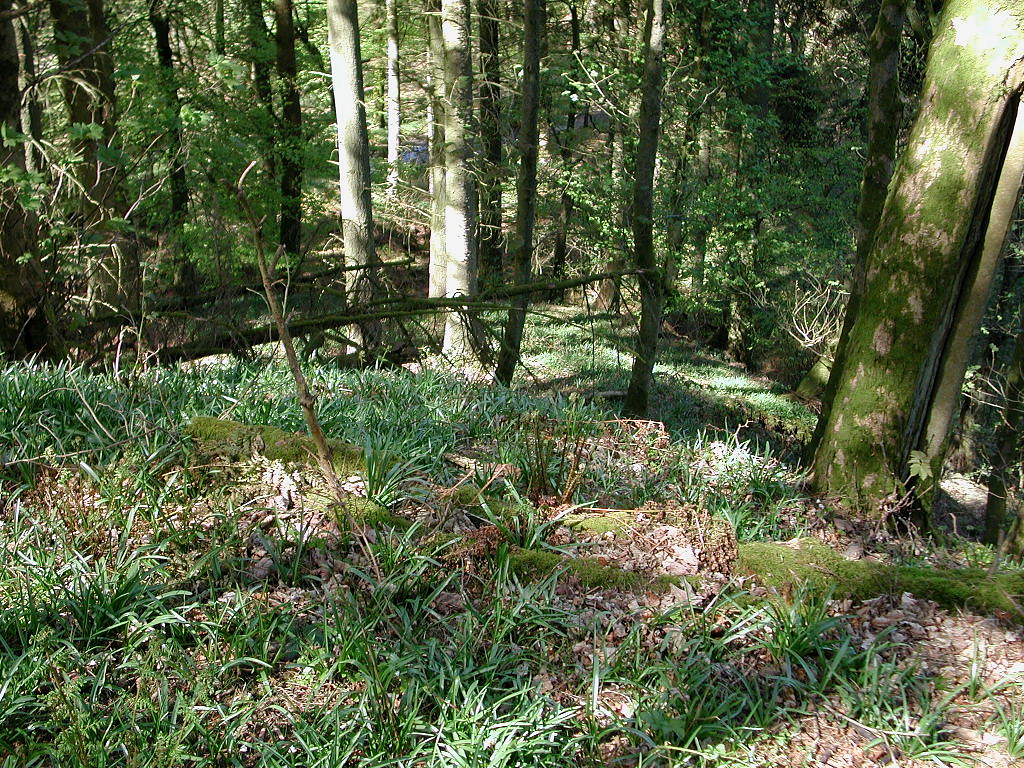 Large motte castle resting on a natural spur rising 7.5m visible from a public footbath but obscured by woods and vegetation. Small inner bailey on the south, larger bailey on the south. Motte commands view towards Pentrefoelas. Traces of masonry found, although likely an earth & timber castle. Abandoned by late 12th century.