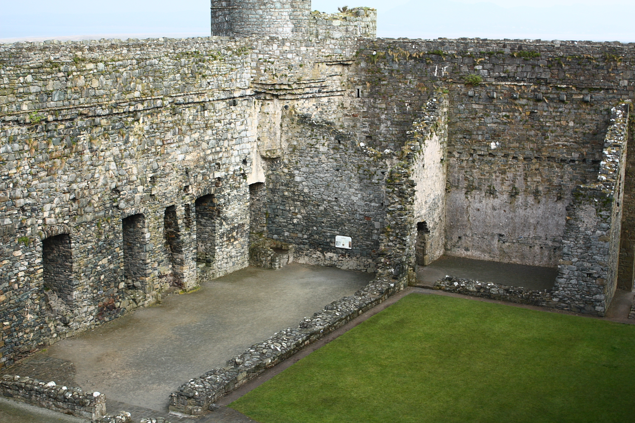 Below (2): view of the North West and (ruined) North East Towers from the castle wall walk