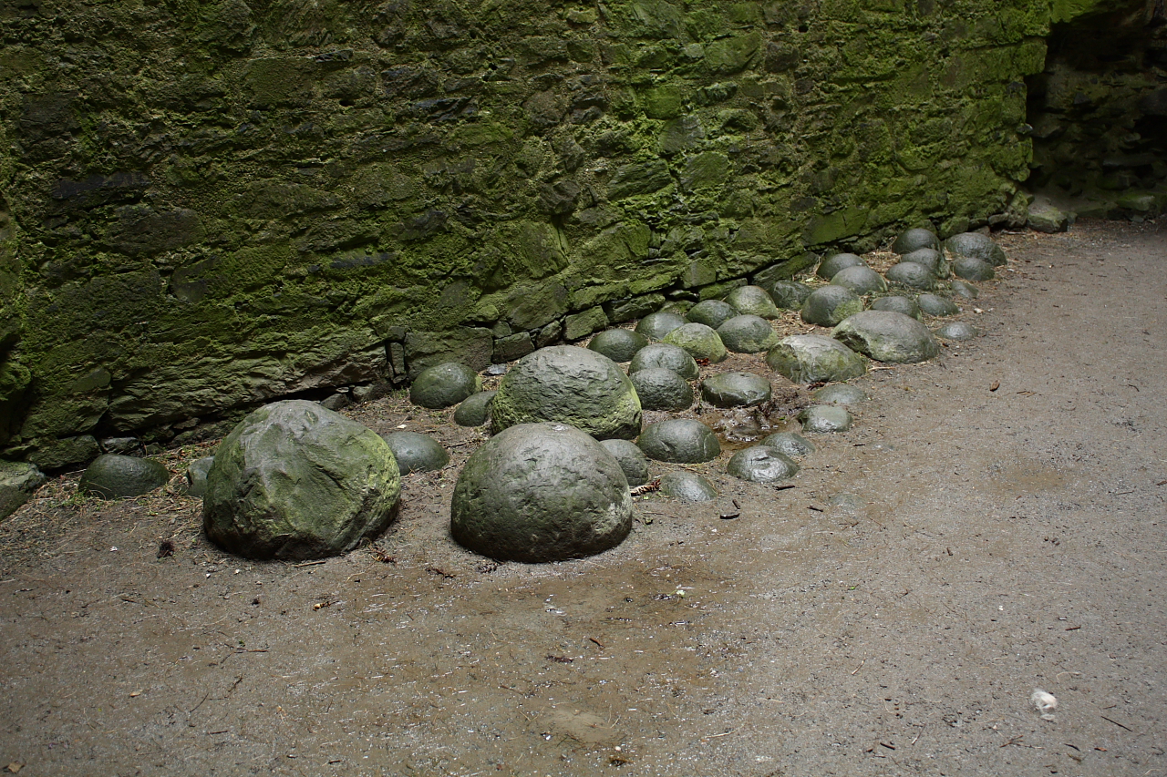 View of the inner gate passage at Harlech Castle fom (1) ground level, and (2) above the passage